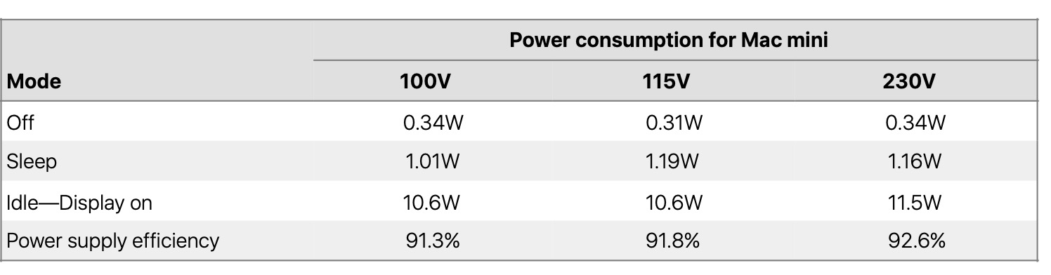 - The Mac Mini M1 shows a significant, over 40% drop on power consumption, either off, sleep or display on and idle. This makes sense because the last one was from 2018, so improvements are possible .