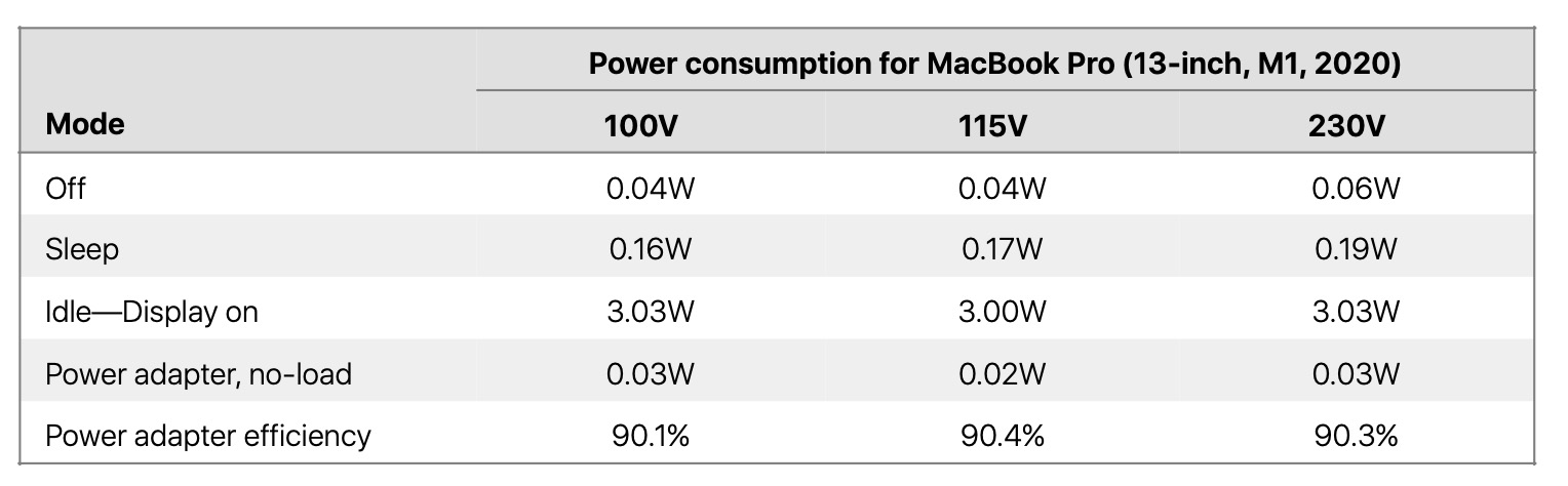 - When your Macbook Pro sleeps, it runs 0.04-0.06 watt either in May (Intel) or next week (M1). Also the drop in energy for idle screen and off are not impressive when Apple Silicon is compared to Intel. I expected better values because of the M1, but there is little change when compared with Intel.