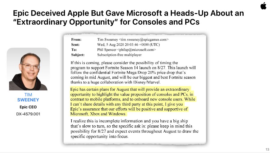 Respectfully, this reads as some kind of fanfic born out of wishful thinking.An ace up Epic's sleeve is something that keeps getting talked about which is the 30% is the standard practice amongst tech companies for in-app purchases, Apple due to it's app store, Google due to it's Play Store, Sony and Microsoft due to their online console stores, Steam due to it's online store. And they all have one thing in common, charging developers and other companies 30% fee for using their services. Once that connection is made, it then comes under the term 'industry practice' and as a result, can be investigated or scrutinised for monopolistic behaviour or unlawful businesses practices.
