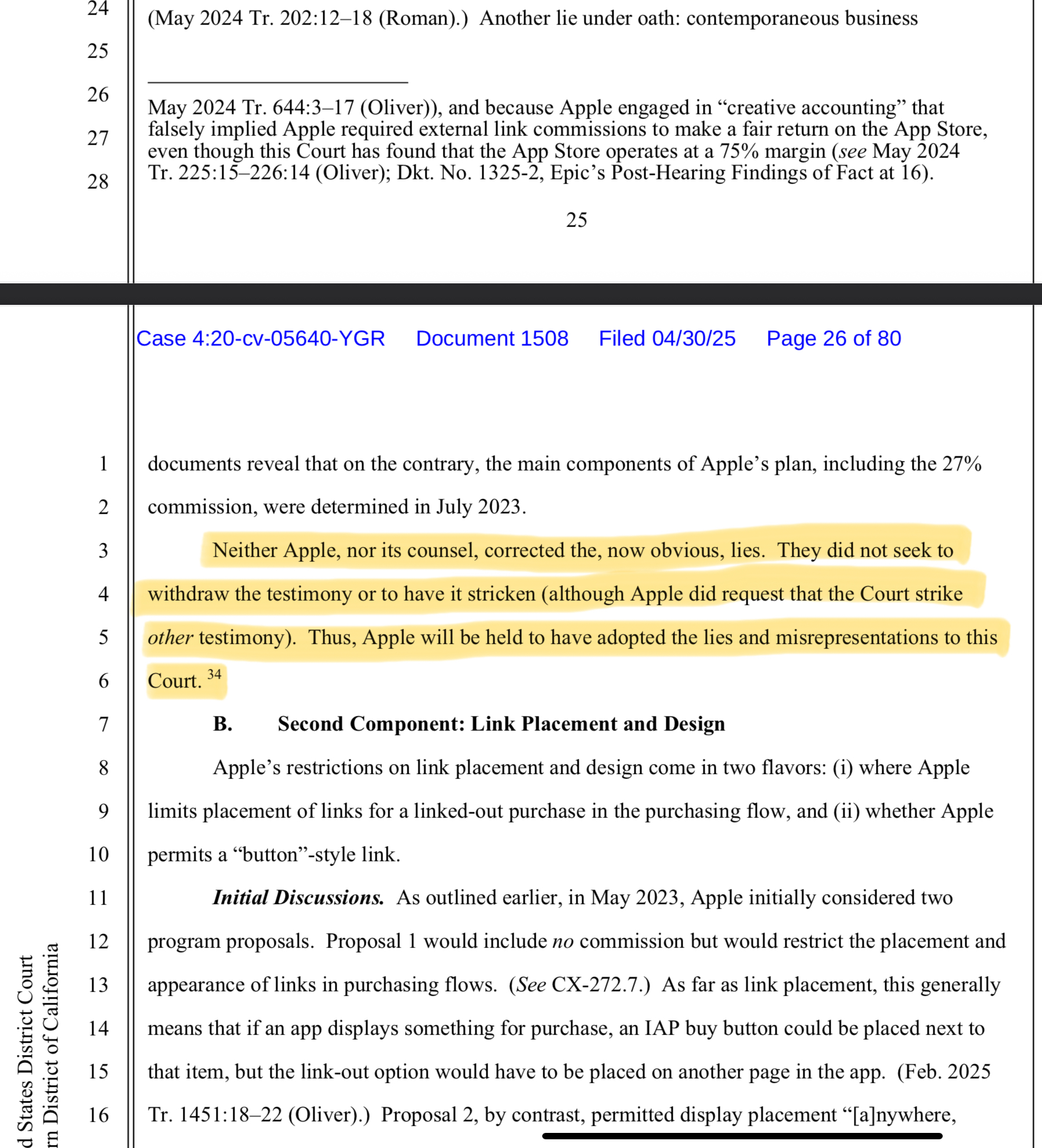 And the judge is accusing one Apple employee of outright lying under oath.