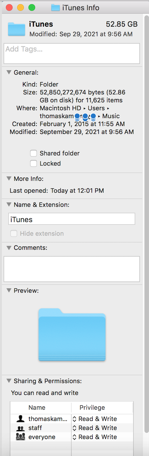 3) Ensured the "permissions" are compatible for both the iTunes folder and the external hard drive.