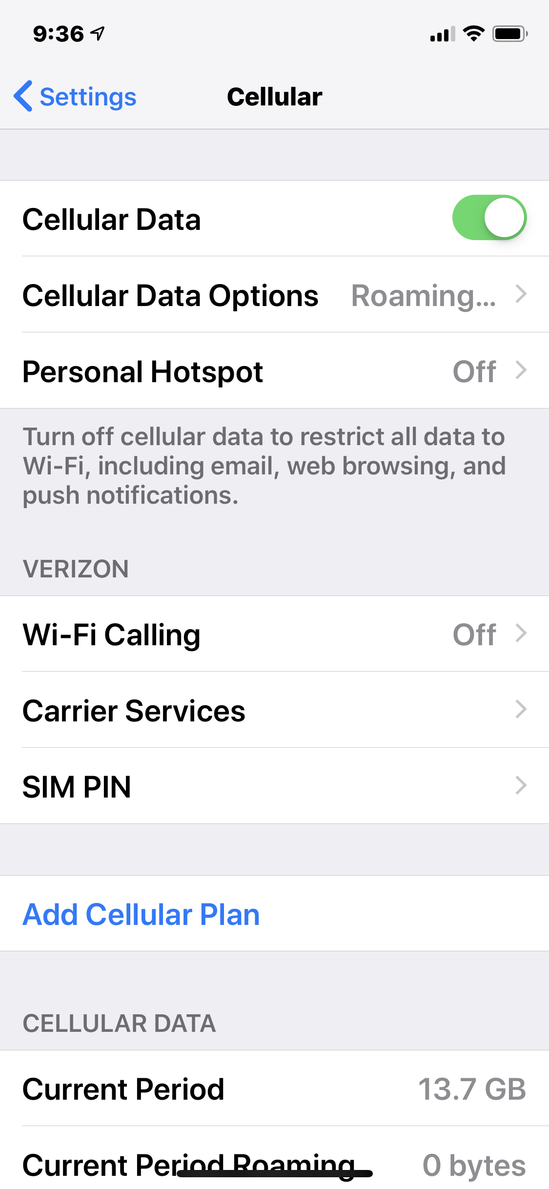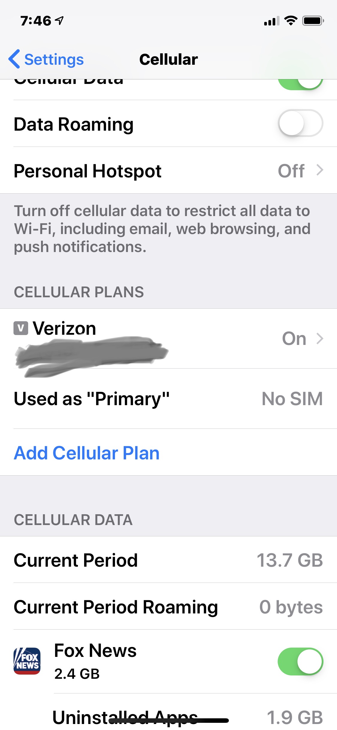 A few days later, I had rebooted my phone and saw the following under Settings-Cellular.