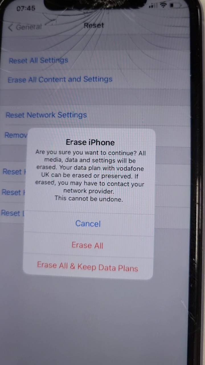 I have tried multiple ways of wiping such as DFU mode through itunes, just selecting erase all content and settings and telling the phone to remove the data plan but again when i go through the initial setup it is showing my vodafone data plan as available to setup.
