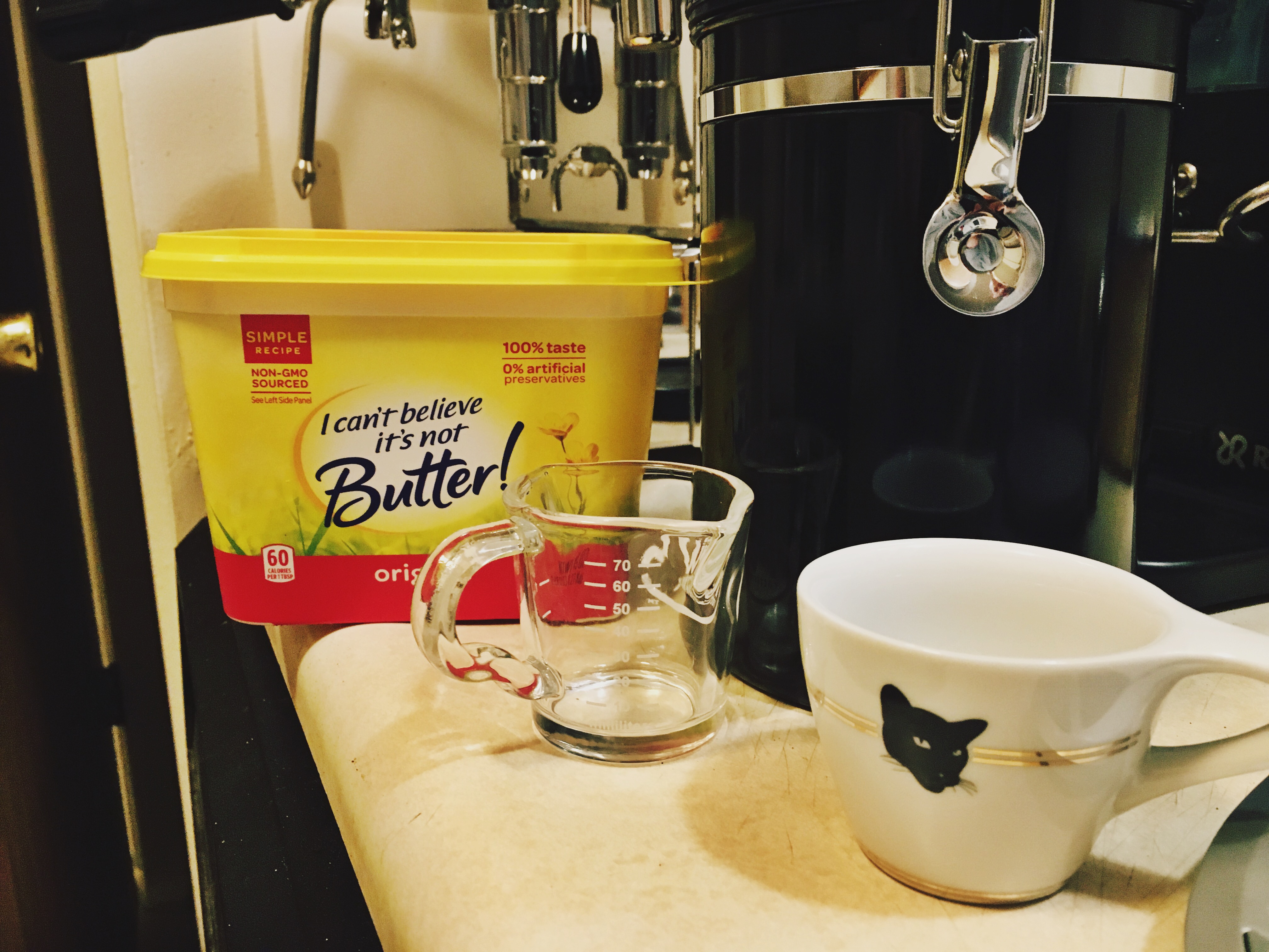 Hey there cranky butt, I just found a newspaper article about you!I, too, must admit to being repelled by the idea of putting butter into anything that I drink.