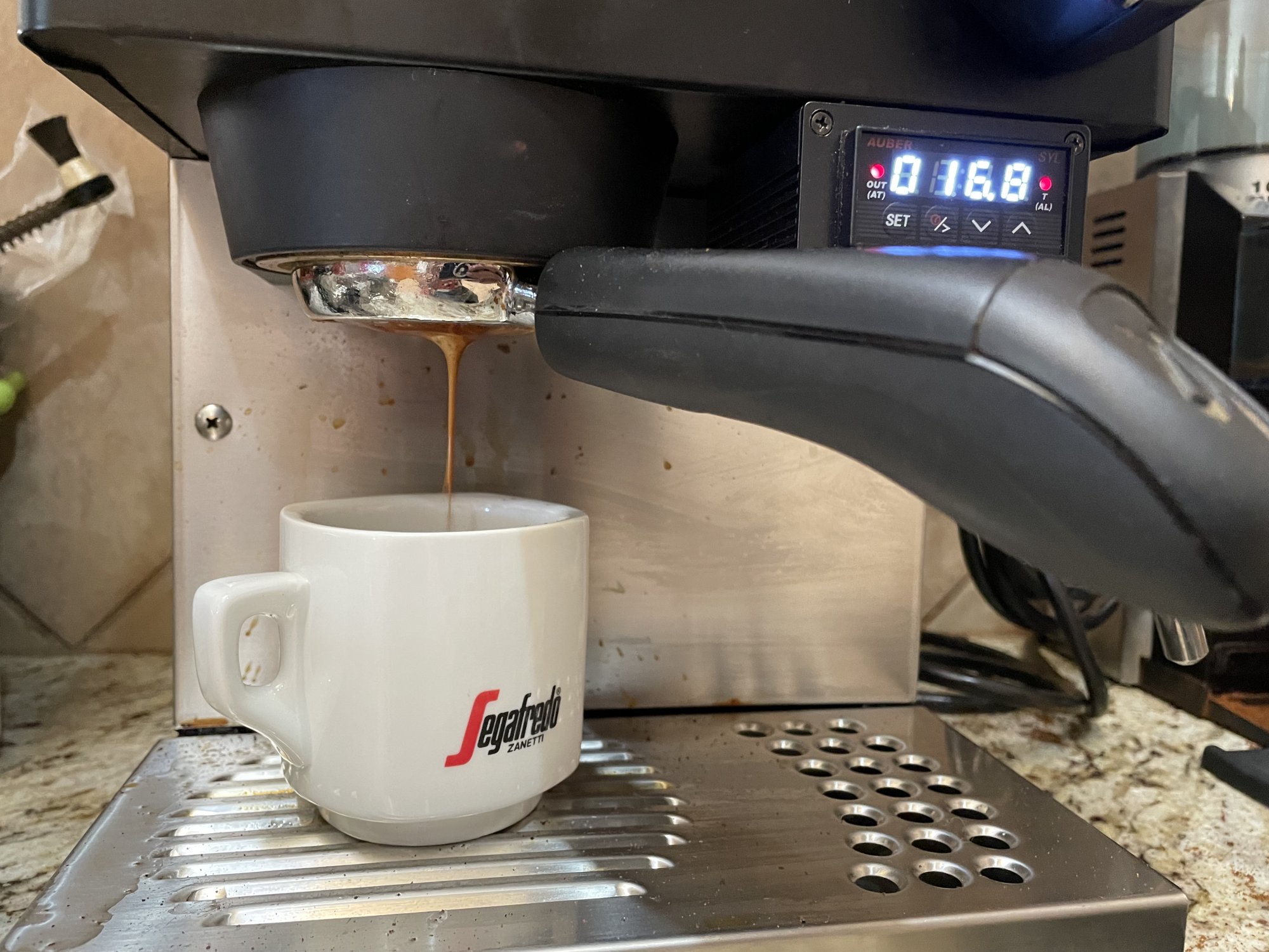 Am enjoying (on this damp, dreary, overcast Christmas Eve afternoon) a mug (Le Creuset) of coffee from El Salvador, a blend (of my own devising) of three different coffees from El Salvador, from three different farms & producers (SL 28 Honey Roast, a Wild Forest Project; Bourbon, natural process; and Orange Bourbon, natural process), served with organic hot milk.
