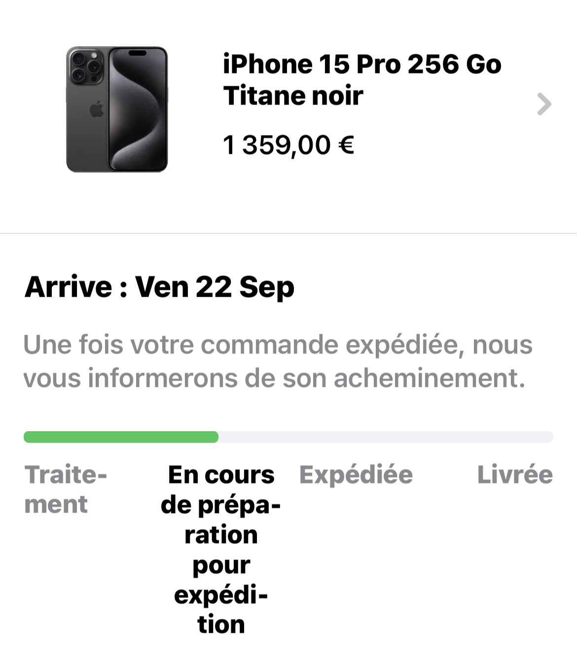 And what is the delivery date on Apple.com for your 15 Pro that's on Preparing for Shipment?The phones will come from china… my ip15 pro is on “preparing for shipment” since saturday.