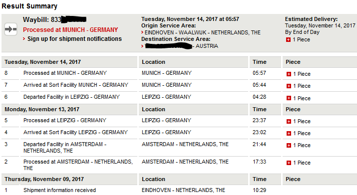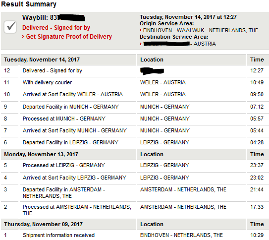 Guys a quick update. Two days ago Apple showed sent with exp delivery on 27/11 (the end of the initial est range of 20-27/11), DHL said shipment info received in Eindhoven (weird. Delivery address should be The Hague). Today Apple’s website changed to sent, on the way to customer, on track, still est delivery 27/11, DHL still shipment info received only. Anyone knows I can suddenly expect to see Apple bringing forward the final delivery date from 27/11??