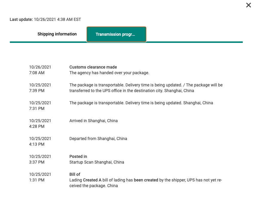 Mine shipped yesterday, and is still in Shanghai, after being stuck i customs for a while. Expected delivery from UPS: tomorrow (28 October) in Helsinki, Finland
