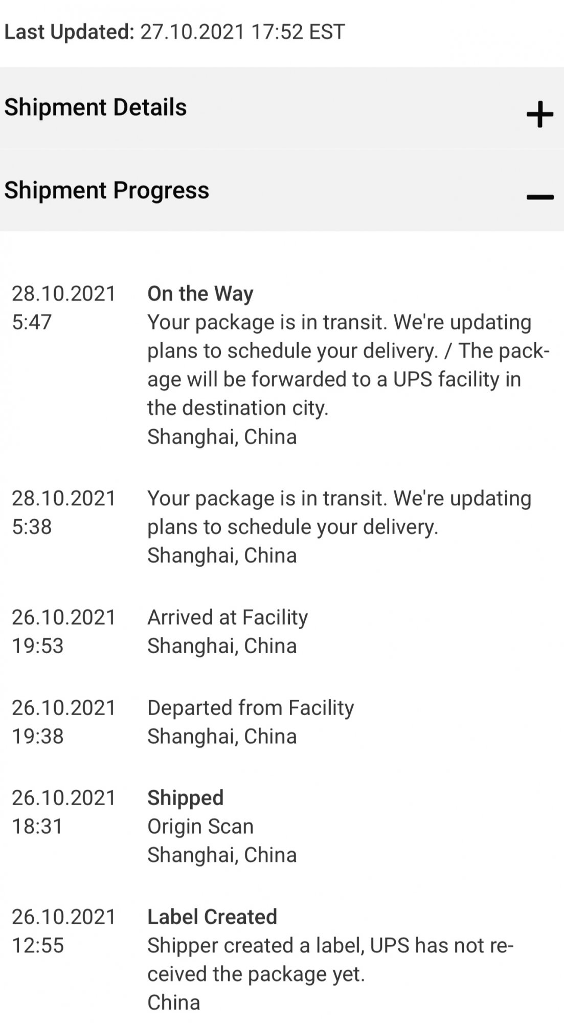 Mmh, maybe mine is on the UPS85 (according to Flightradar24) and that’s why I got the second update right now
