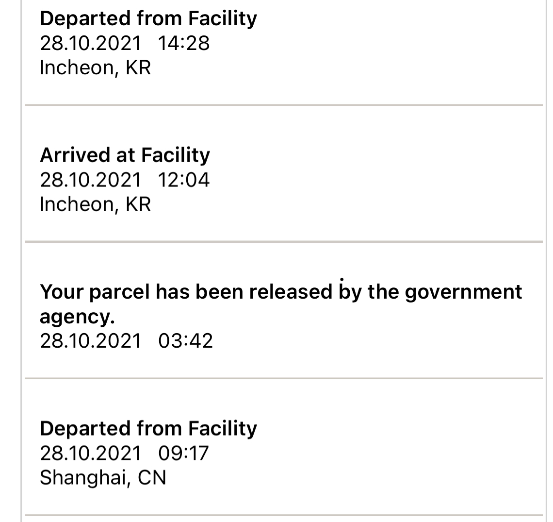 Same here... And my delivery (UK) shifted from Friday AM to Monday AM. 😕Departure scan at 14:28 from Incheon KR.