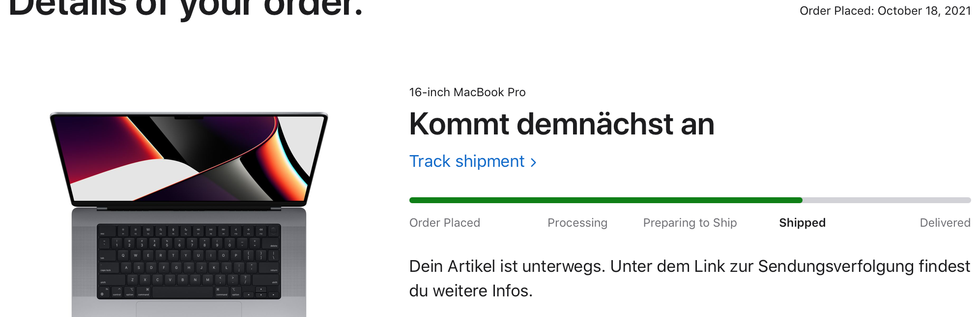 Maybe you go by truck? Don’t know how long that would take…Same here, it says "coming soon" instead of giving a concrete date on the apple tracking page.