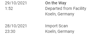 | 29.10.2021 4:34 | Auf dem Weg Hat Einrichtung verlassen Koeln, Germany |
