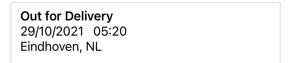 What’s your delivery window?I doubt the driver actually started at that time, nobody would open the door for him lol. It’s only 45 minutes from Eindhoven to here.