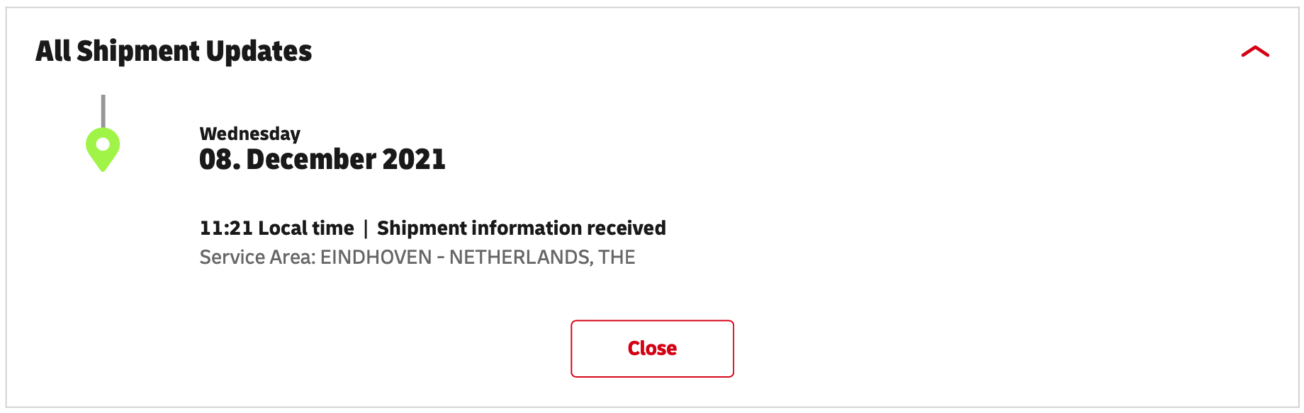 On the Apple-provided DHL (Track & Trace Express) website, I can only find basic information. Is there a way to get more detailed information?