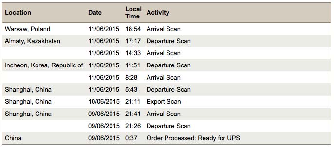 China 05/06/2015 23:36 Order Processed: Ready for UPS