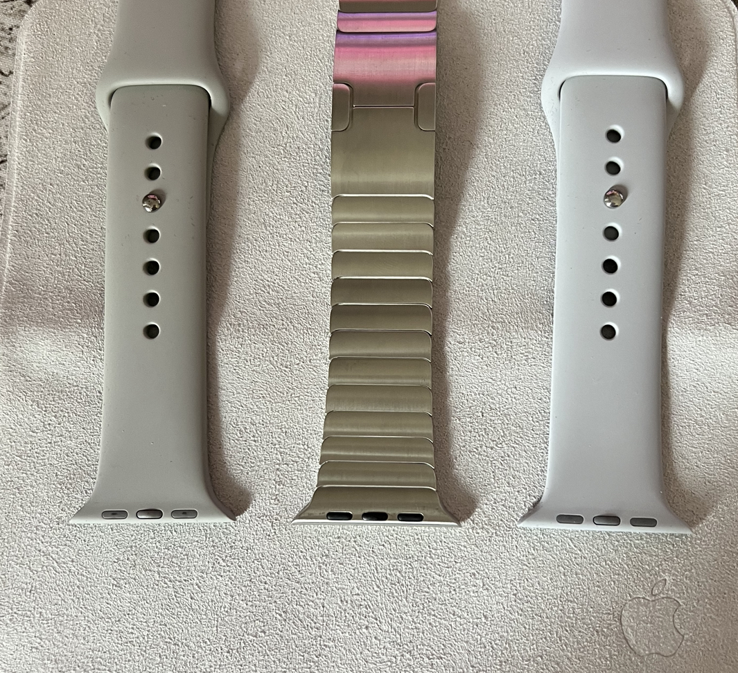 Hi, sorry I totally missed this thank you!Heres the Ti Band (light grey), The Stainless Steel link and Fog - FWIW - and my terrible photography.