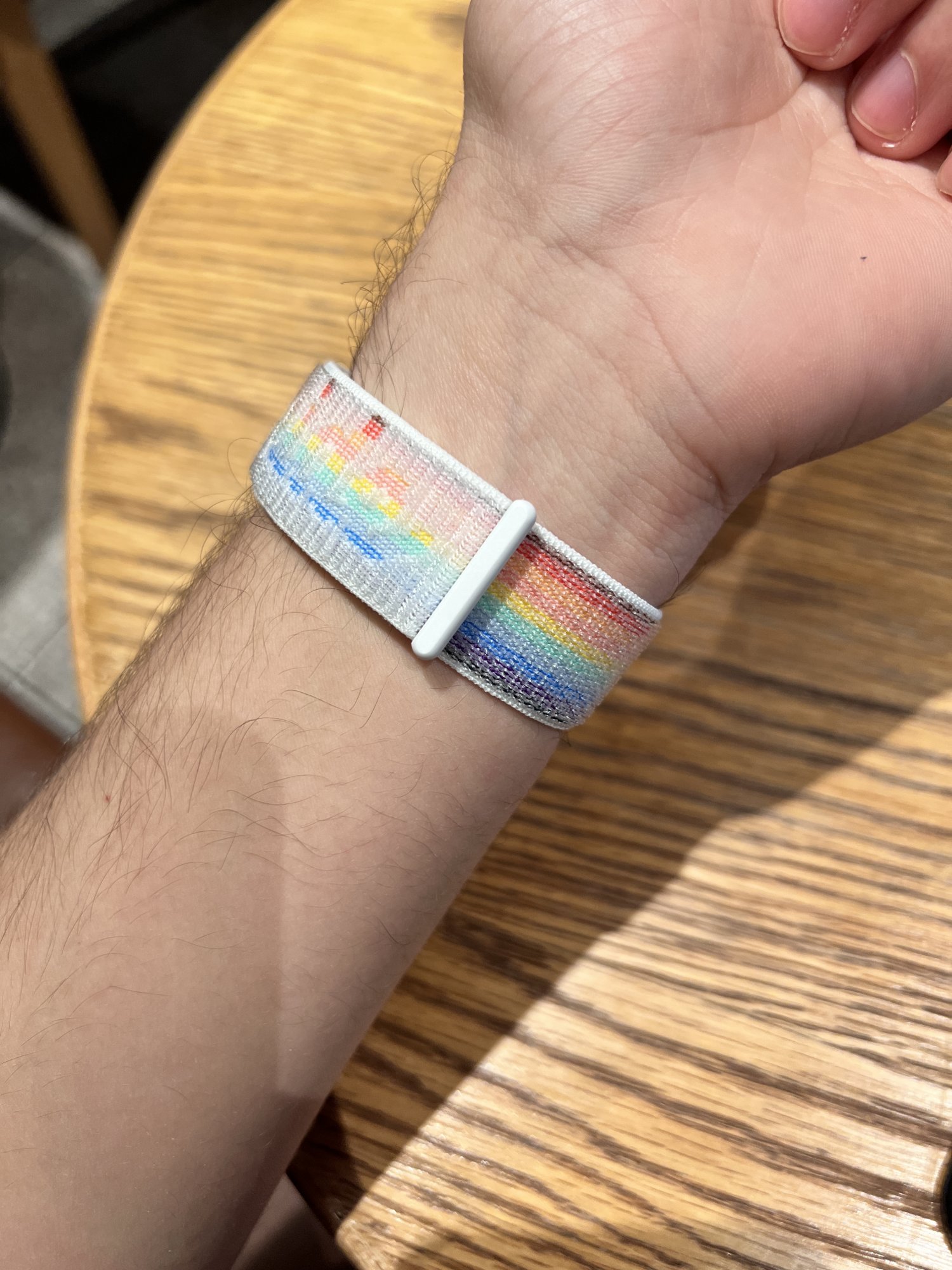 Yeah, I like it more in person too. It’s a softer version of a rainbow, but really pretty for that. I was about to say that the “pride” is less noticeable than I expected too, as it sits completely underneath my wrist, so it’s like a little surprise that’s mostly just for me. But looking at your pics, I realize that’s a matter of wrist size.Quick review of this years Pride Sport Loop in indoor lighting - I actually like it. It’s similar to last years Braided Solo Loop in that being you’re on the fence/unsure when you see the render online, but in person, its very pleasing on the eyes.