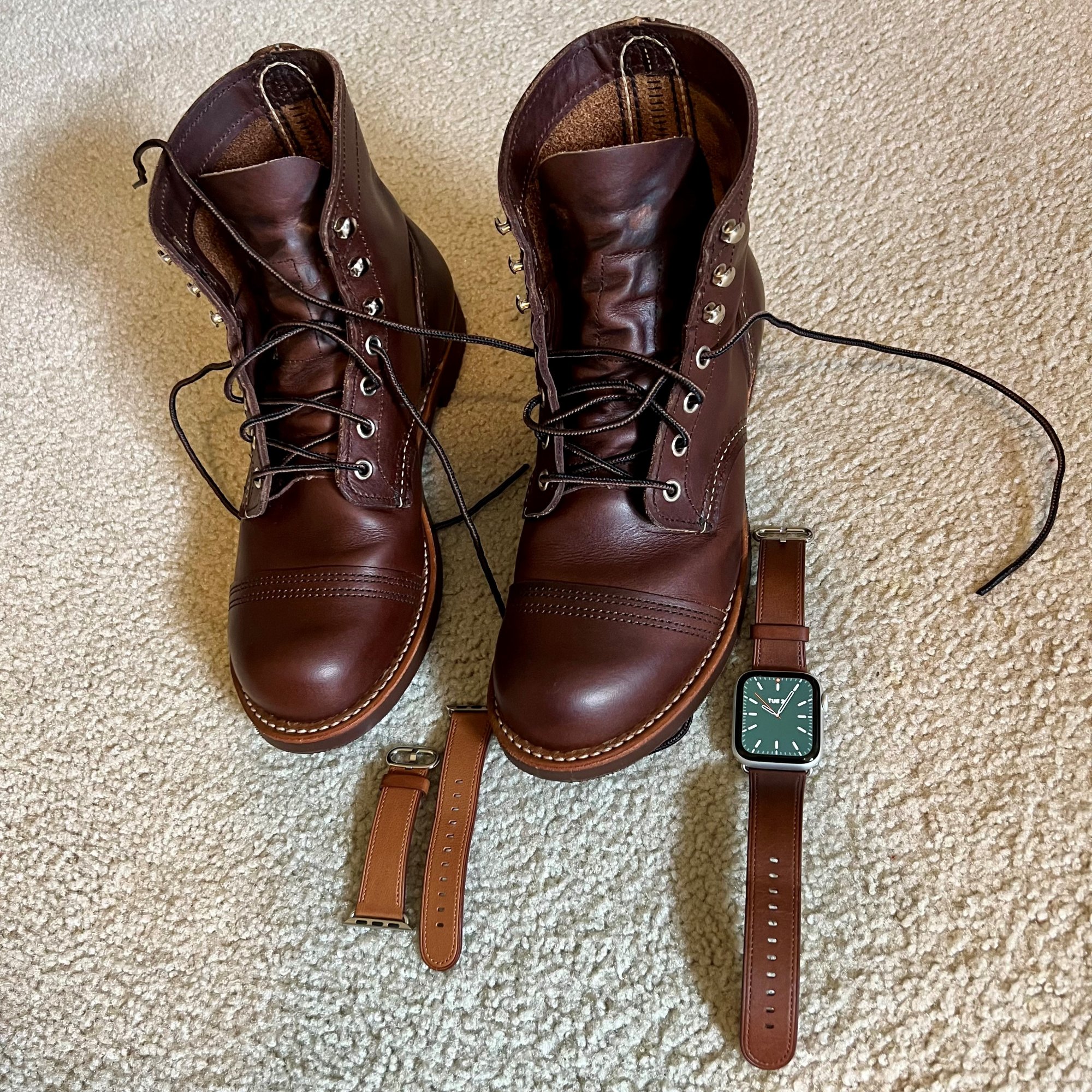 Photo of my darkened saddle brown next to my wife’s 38mm Saddle Brown Classic Buckle. Really happy with the way it turned out. I got some new Red Wing Iron Ranger boots (Amber Harness color) and the darker band is now closer in color to my boots.View attachment 2021902