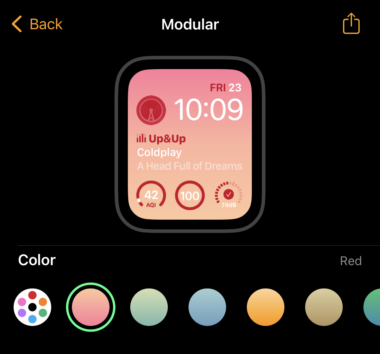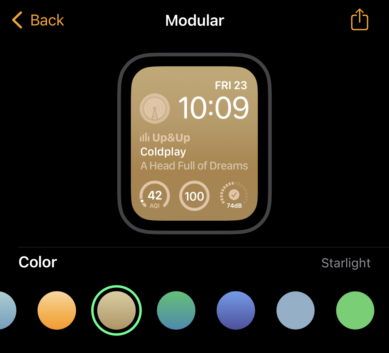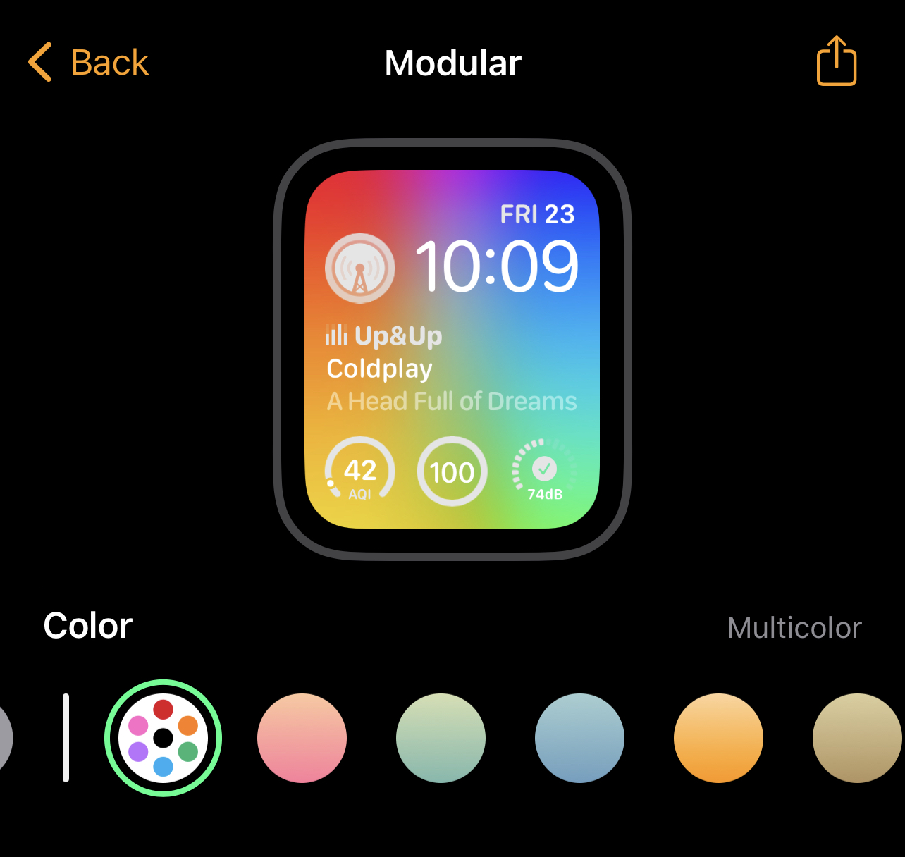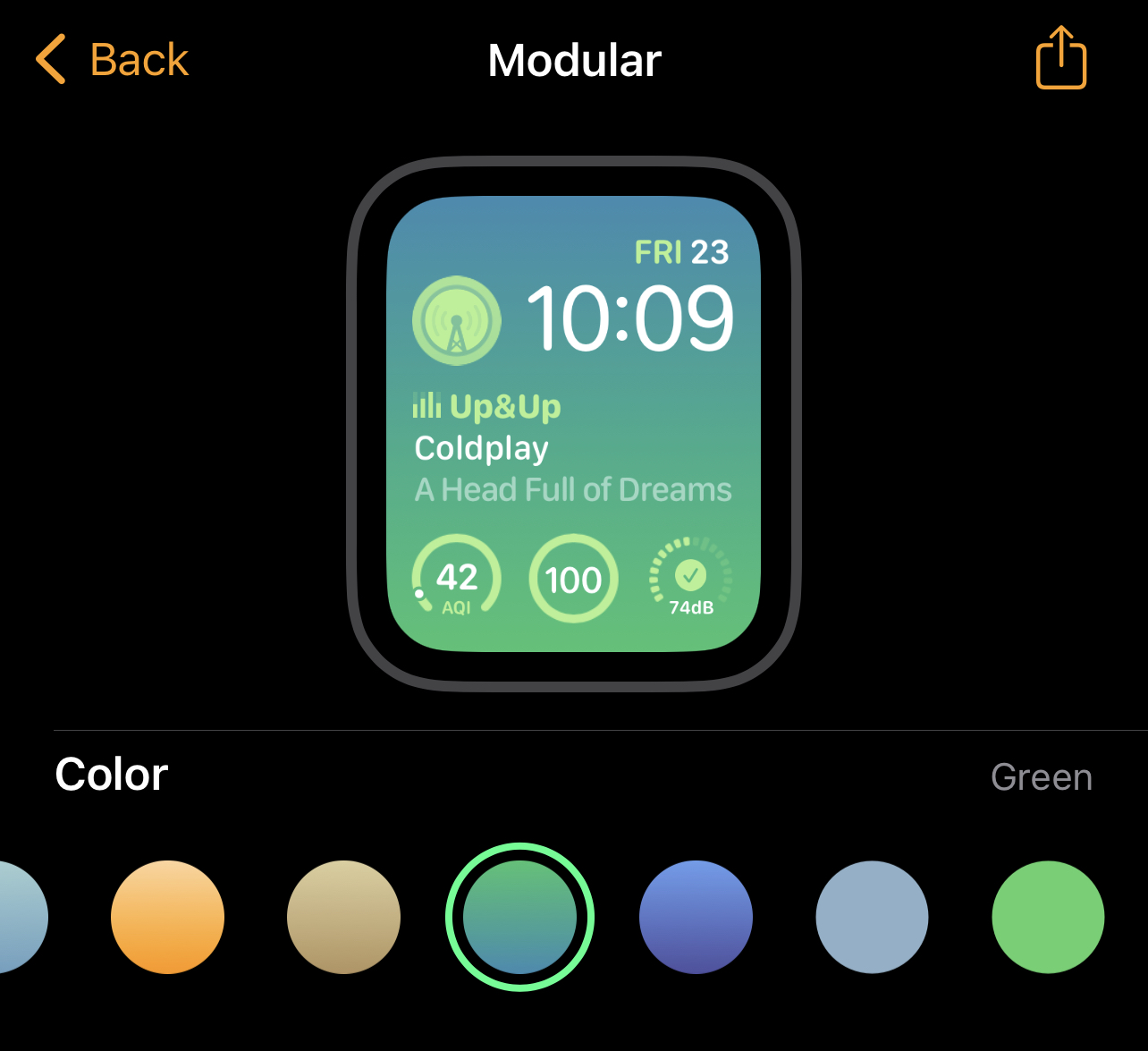 Very nice! So does the Infograph Modular face even exist anymore in watchOS 9? Because this new Modular face looks just like the Infograph Modular face, just with a bunch of extra color options.All the new background gradient options in os9