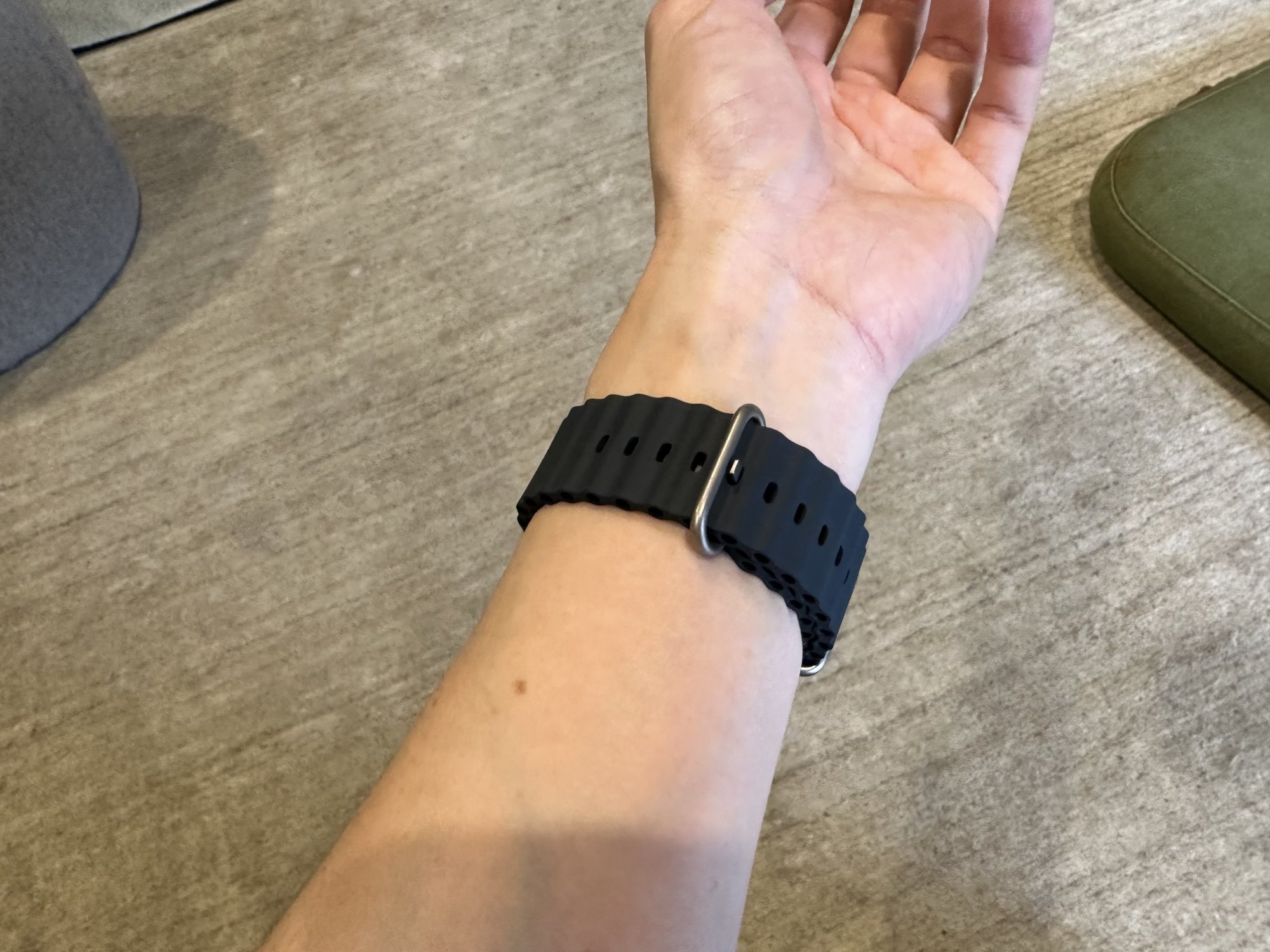 Oof, that’s right the band channel sits so low on any case. It might tip a series 6 BSL that’s loosened from “wearable” to “annoying” @Clarke_G is it a series 7/8 BSL?Someone is going to try this out soon enough, but FWIW my guess would be that your existing Solos will wear more lose on the Ultra. 4 mm is not nothing, it is exactly the difference between my normal Solos in size 5 and the one Solo I have in size 6 (for sleep). And no, from a few pictures like this one below it doesn‘t look like the lug rail of the Ultra is higher from the wrist.