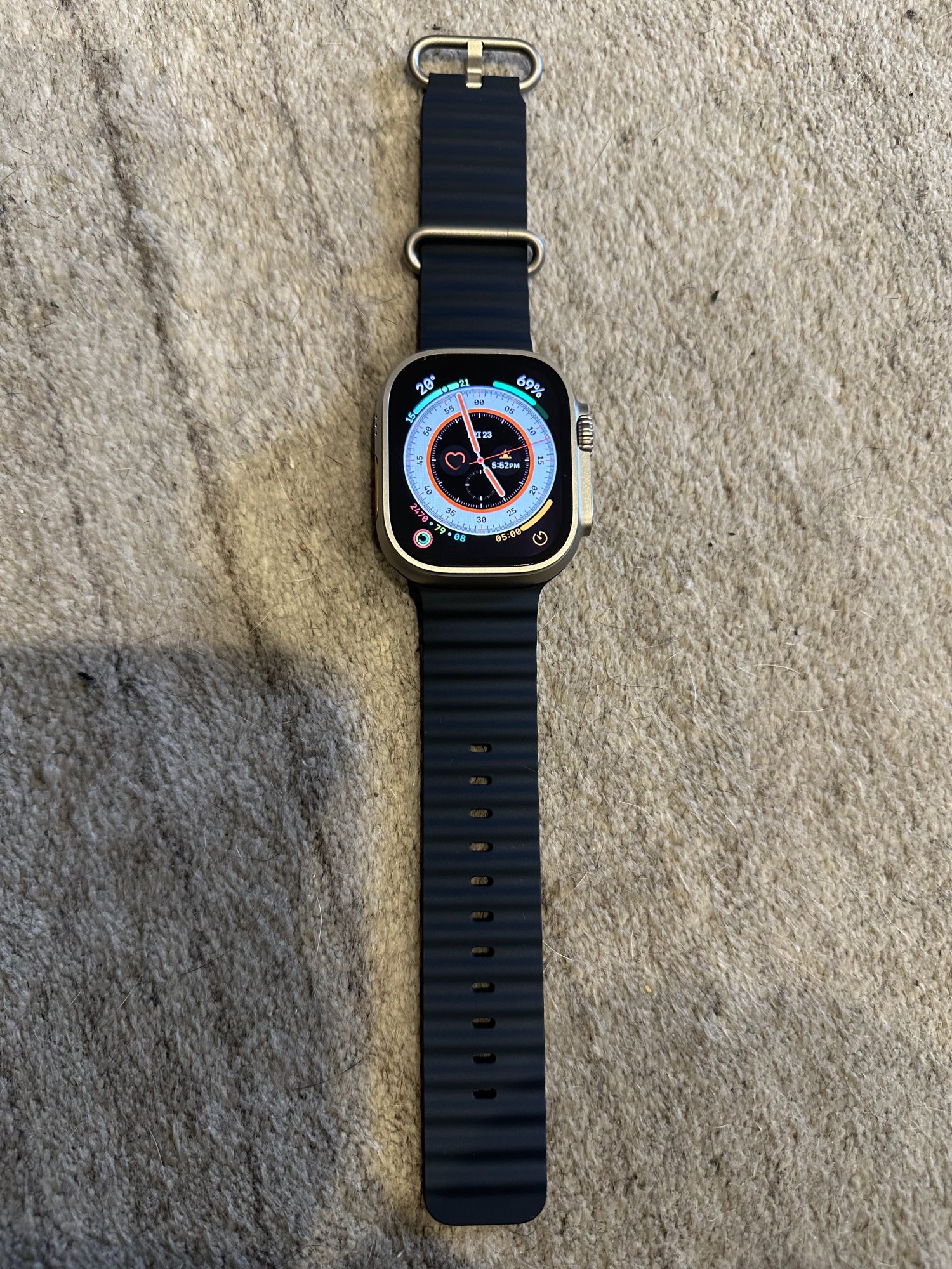 It's a size 5 Abyss Blue 45 mm, brand new and sealed that I yoinked for just 15 euros, his first solo loop and I wasn't sure about the exact size between a 5 or a 6, but it was too good of a deal to not try it out. Actually I'm kind of hoping that it WILL be slightly looser on the Ultra since Size 5 fits my dad's wrist pretty snugly, so a little looser on the Ultra plus natural loosening with some usage and it might actually be perfect for him 😅Oof, that’s right the band channel sits so low on any case. It might tip a series 6 BSL that’s loosened from “wearable” to “annoying” @Clarke_G is it a series 7/8 BSL?