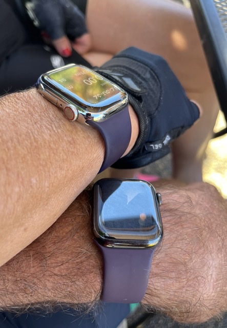 I dunno man, the elderberries are starting to taste like dark cherries to me.Here are some comparison pics taken during a cafe stop on a bike ride today. Mine: Dark Cherry on 41mm SS Graphite. Hers: Elderberry on 41mm SS (bundled with her brand new series 8).