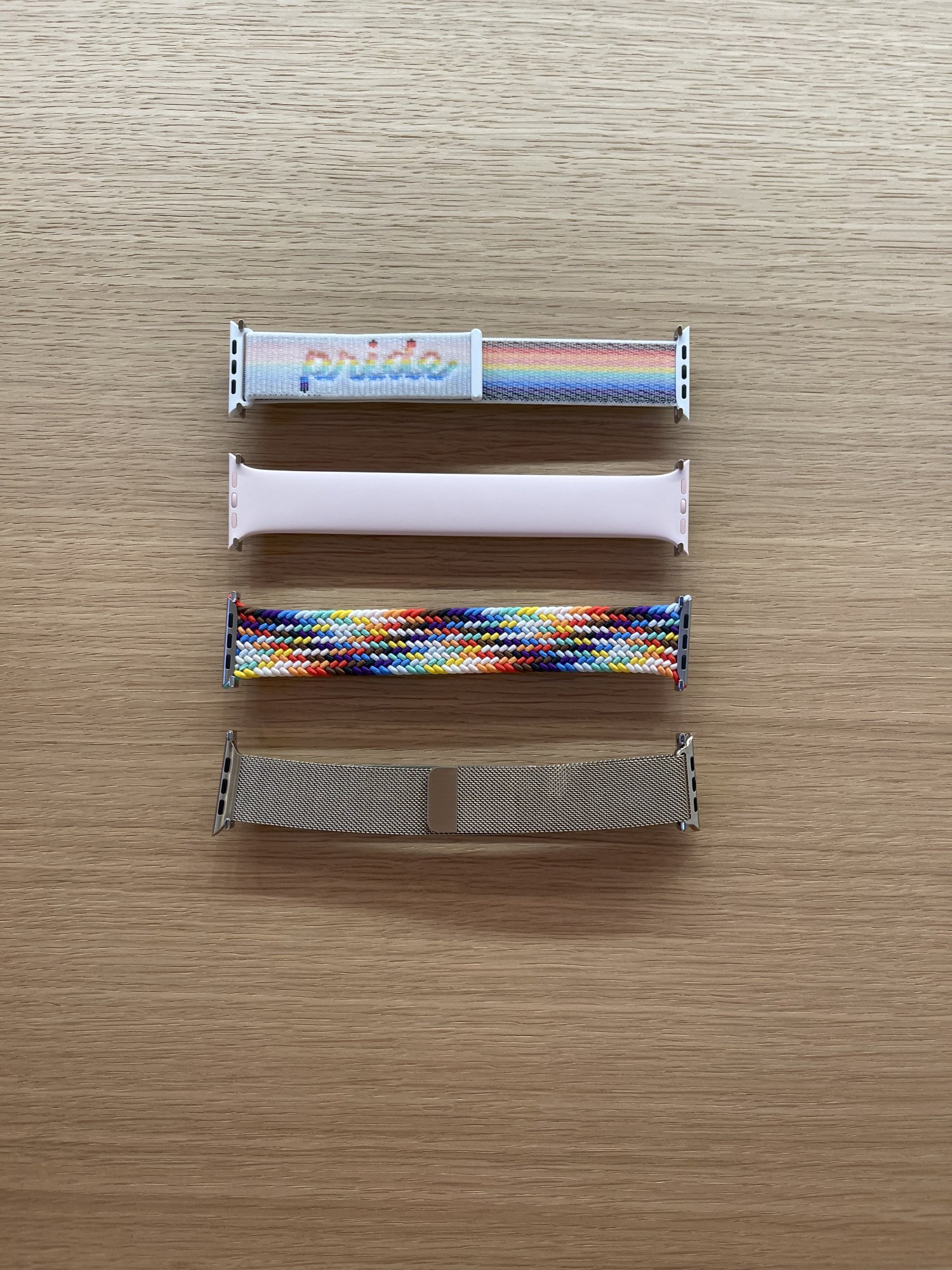 Apple needs to hurry up and sell this mounting hardware so that I can put my bands on the wall like this.I was at the Apple Store. I might consider the Milanese Loop in gold and overcome my fear of mixing metals.