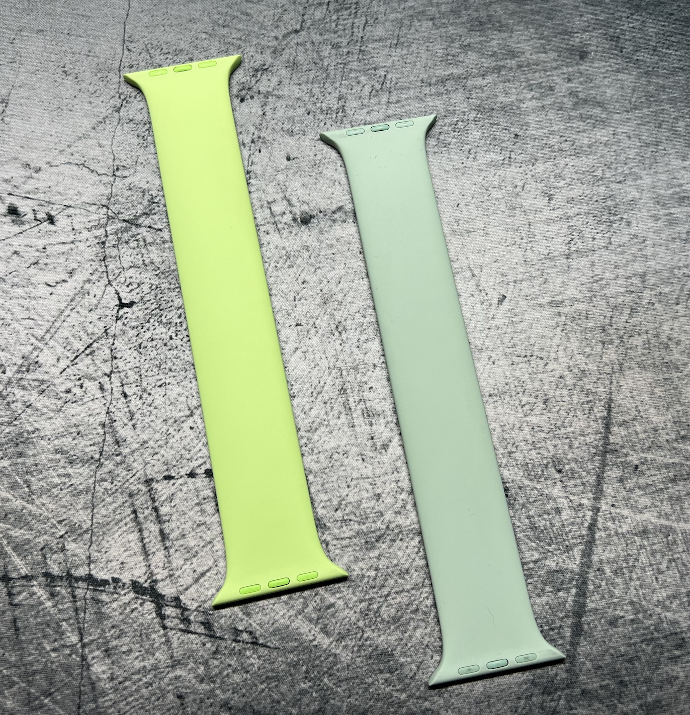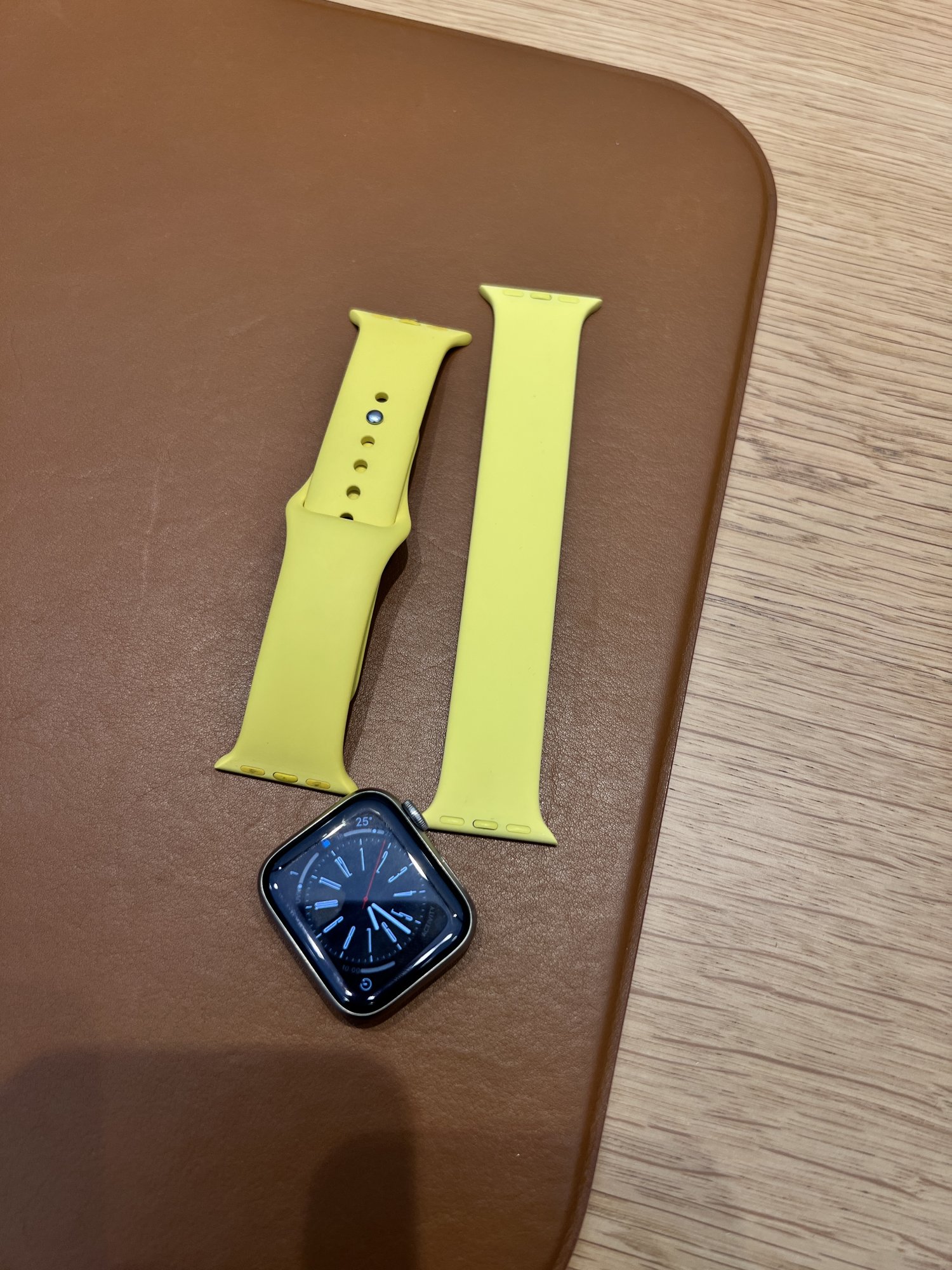 The Canary Yellow Solo Loop next to my existing Canary Yellow Sport Band