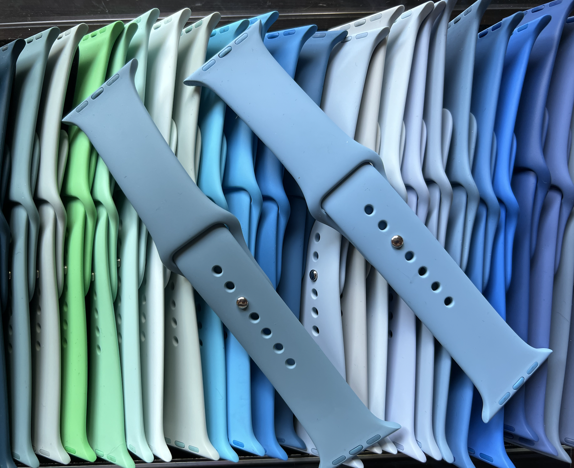 Crikey!! You legend!! Thanks for those, greatly appreciated.I will say, all the hero shots are really not accurate as to the bands true colors. I have all the sport bands, and they're mostly all pretty different (some very subtle heh). Here are shots on a semi sunny day inside my house.