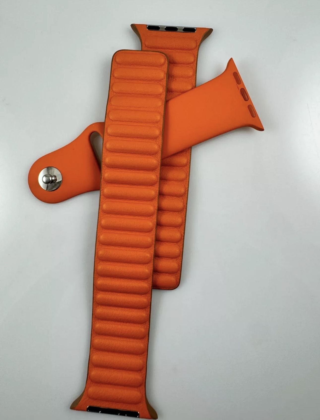 Here are some additional pictures from the seller. Electric Blue indeed goes back some years ago when we had the Classic Buckle leather band.What's really cool is the Electric Blue color is from the Series 3 era, so bringing it back is totally unexpected. The orange looks like an exact match to the Orange leather wallet and 14 pro max case.