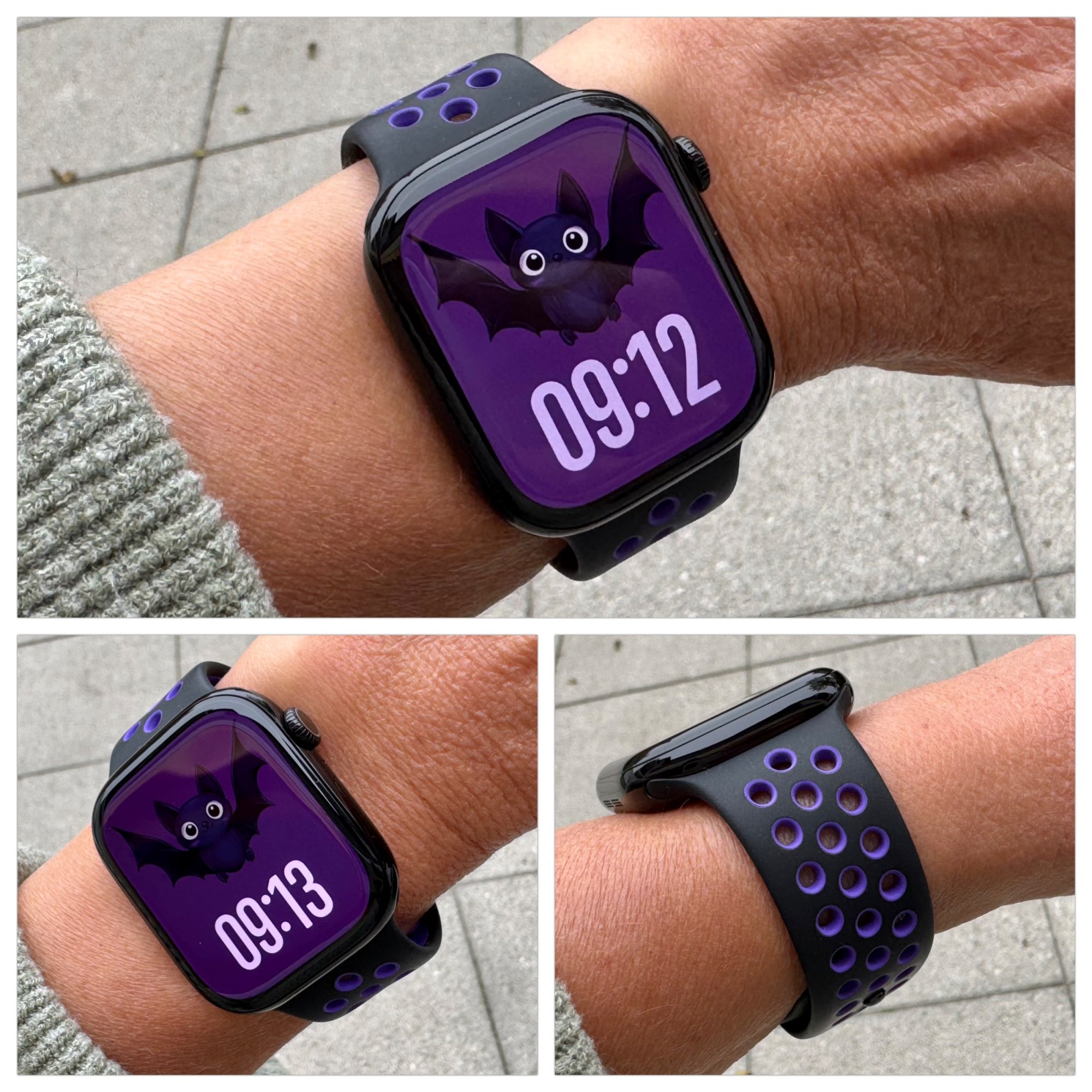 Was hoping for a good fall release that screamed halloween to me, since we really only have the same 5 halloween-y bands to choose from. This is a fresh take on it. Nicely done!Another Jet Black showoff. This time around, with a Black/Hyper Grape Nike Sport Band.