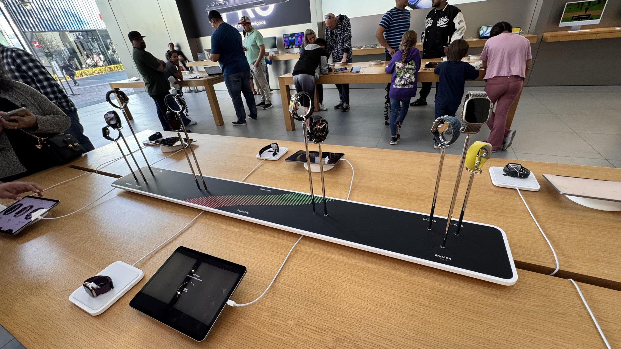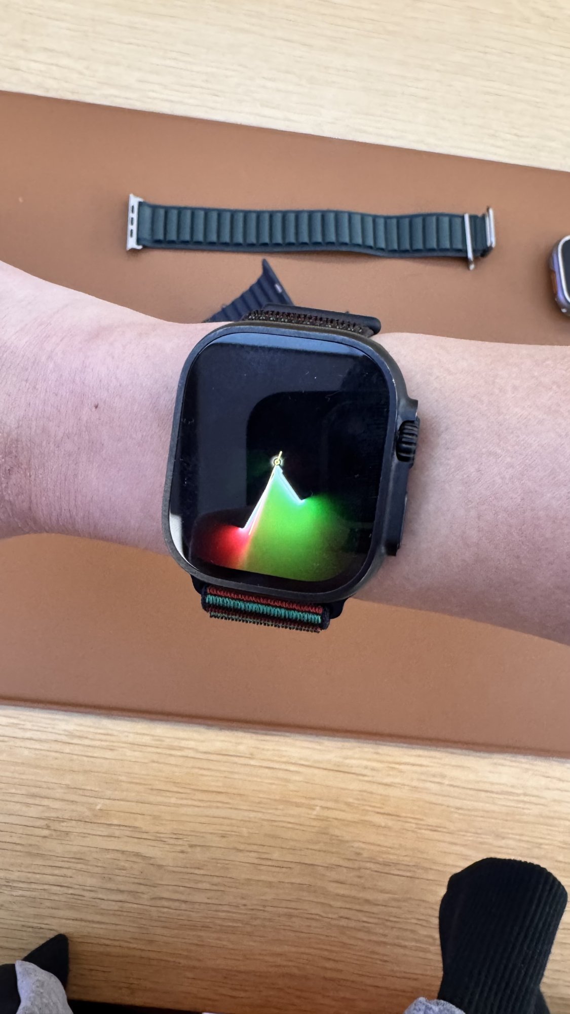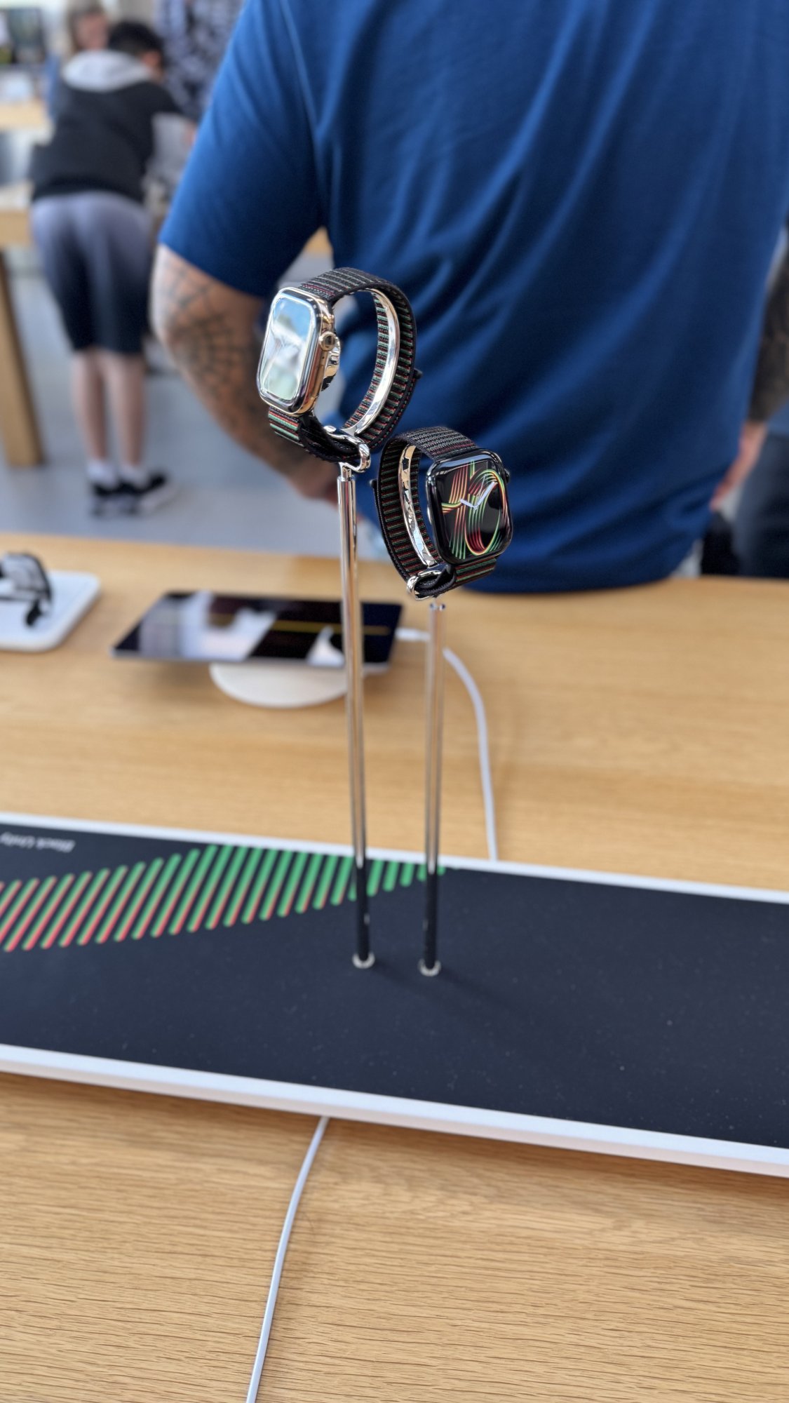 Ohhh I came the Sunday after the bands came out, my nearest Apple Store isn't the newest but they also had a 46mm one available for trying on, too.This is nice. The Thursday I picked up my band, there was no display at the store. The watch band came from the back and the employee didn’t know about the band—tried to sell me last year’s band. Maybe I was just a day early.