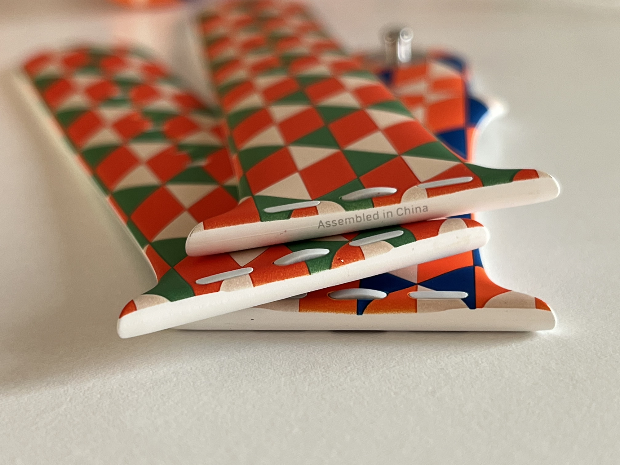 This printing is unlike anything ever before seen from an official Apple release, especially back in 2018. The multicolor harlequin pattern wraps perfectly around and even slightly under the pin and lugs, hinting at an Apple factory finish.