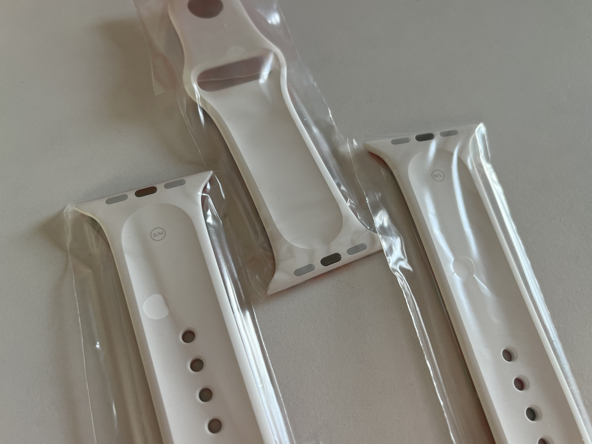 First of all, the printing quality is near perfect. The different layers line up so well, the finish quality feels soft and smooth, and the printing wraps underneath the lugs and pin, something that had to be done pre-assembly. In addition to this, the pin strap is missing printing, while the S/M and M/L have it, likely as this is a 42mm band released in Fall 2018, which would have been right when the switch to 44mm was happening. Missing printing bands like this logically can only come out of the Apple factory. (The fact that there's both a S/M and M/L helps the case... 99% of fakes only include a M/L!)