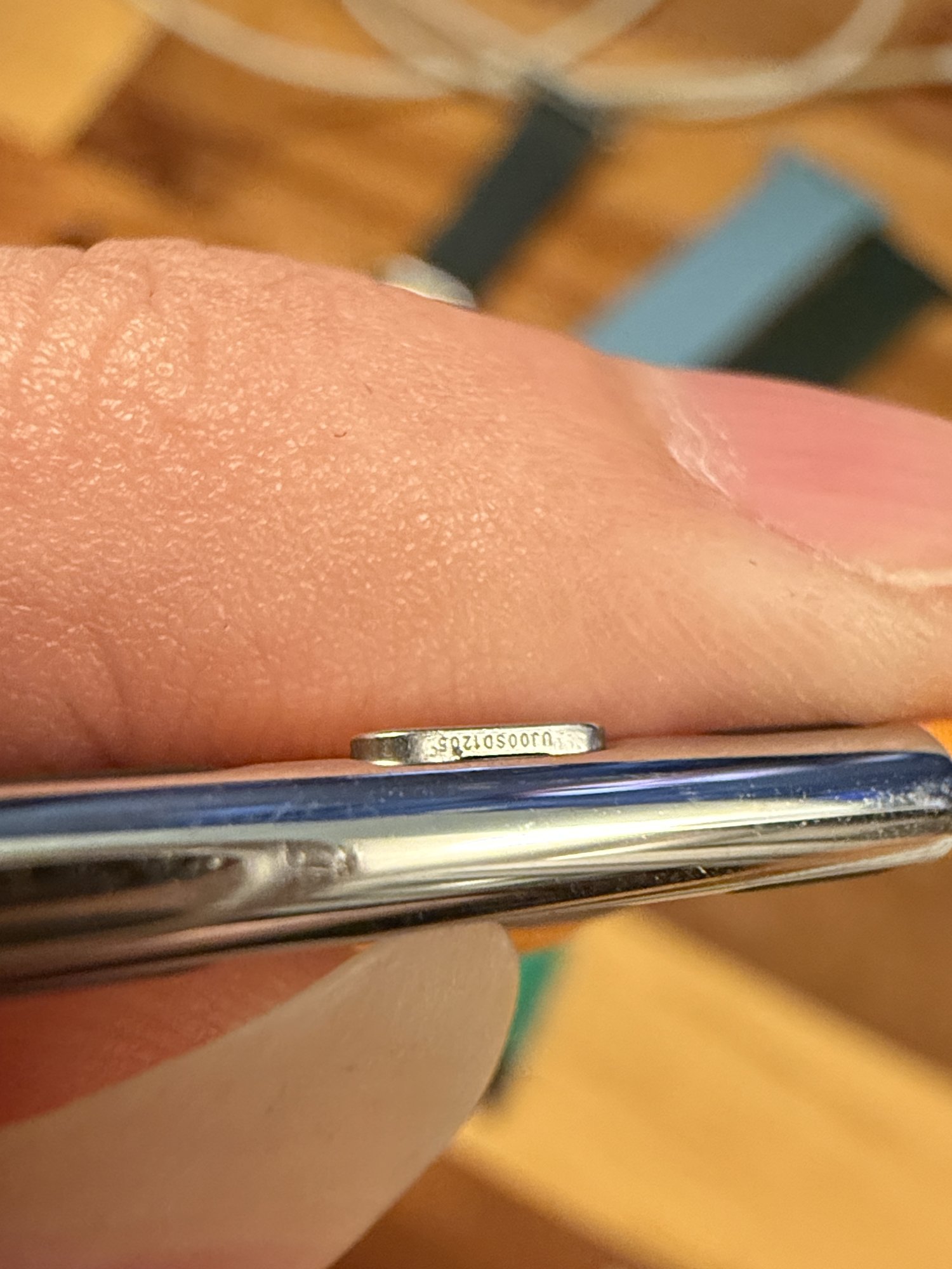 Great piece of info. I noticed these minuscule numbers on my Nike strap, a few sport bands and my other leather Apple straps.Apple started engraving a super tiny serial # on Bands starting around early 2016. Its hidden usually on one of the spring pins. You have to push the pin out and zoom in super closely to make it out. I used Halides macro mode in conjunction with a 16ProMax using the 0.5x macro capable lens to get these photos.