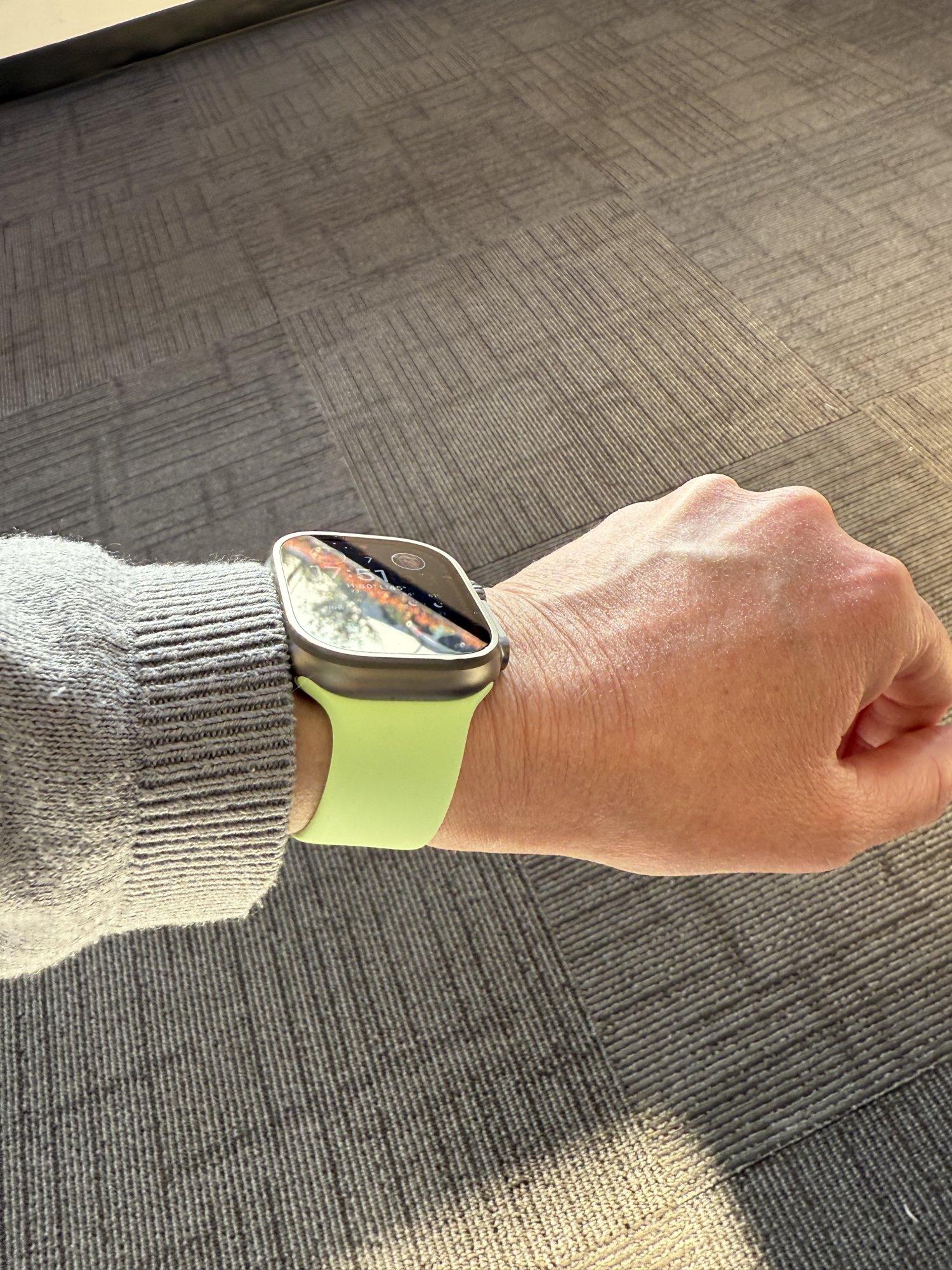 You switch between Apple Watch sizes? I stick to 40/41mm.Lake Green sport band (silver steel)