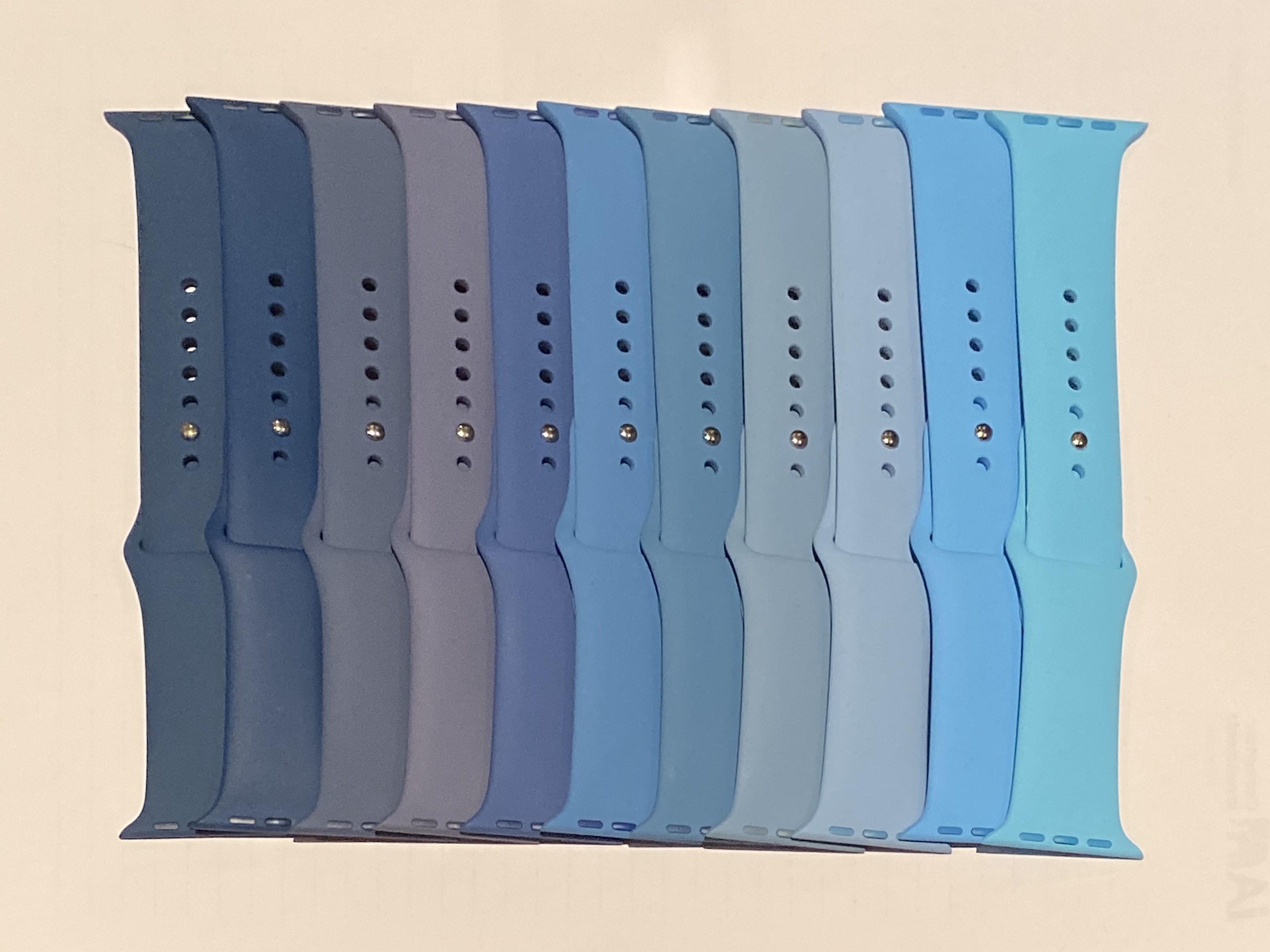 Here’s a photo I previously took of all my blues. Apologies in advance for the lighting - it’s taken under indoor halogen lighting. In more neutral lighting, the bands are all a shade darker.