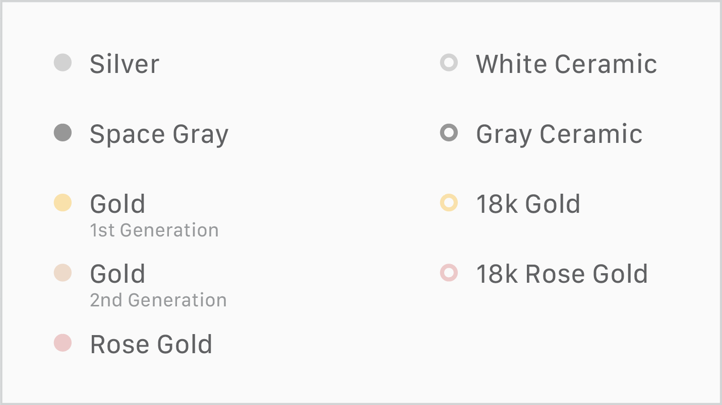 The band bundled with the aluminum watch came with a Rose Gold pin before, but if you buy a standalone band, it has silver pin. About the meaning of the circles, indeed it's about pin colors/materials (I posted it in a previous update):