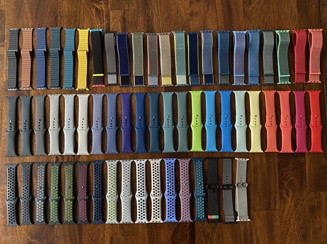 I am actually working on a 3D print CAD for a new watchband holder so I decided to lay out the collection. I am missing a handful I own that aren’t pictured (dragonfruit/spearmint and a handful of Nike releases). I laid them all out to measure and count and was kind of taken aback by the count. Whoops!
