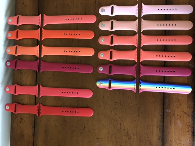 I’m not sure about the light pink, though, unless the last one here on the bottom of my bands that I think is light pink is not: