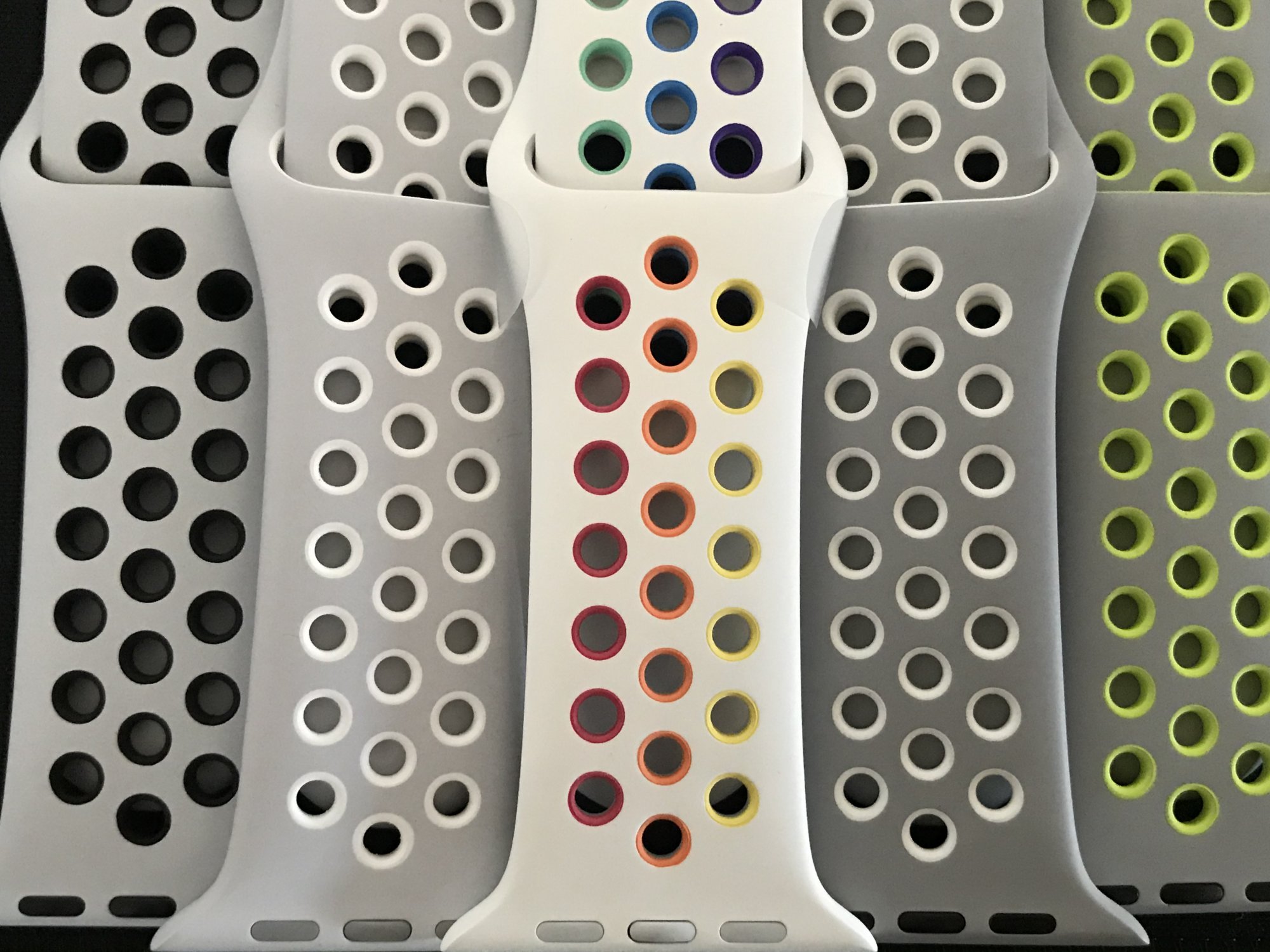 Pardon if I'm wrong, but the markings on my band are just on the M/L only, saying "Assembled in China". Perhaps it differs between generations? Hope someone can elaborate betterMy next question is.... Two of the four bands I just scored, do not have the markings on the part that slides into the watch. They feel real, they have all the other markings.