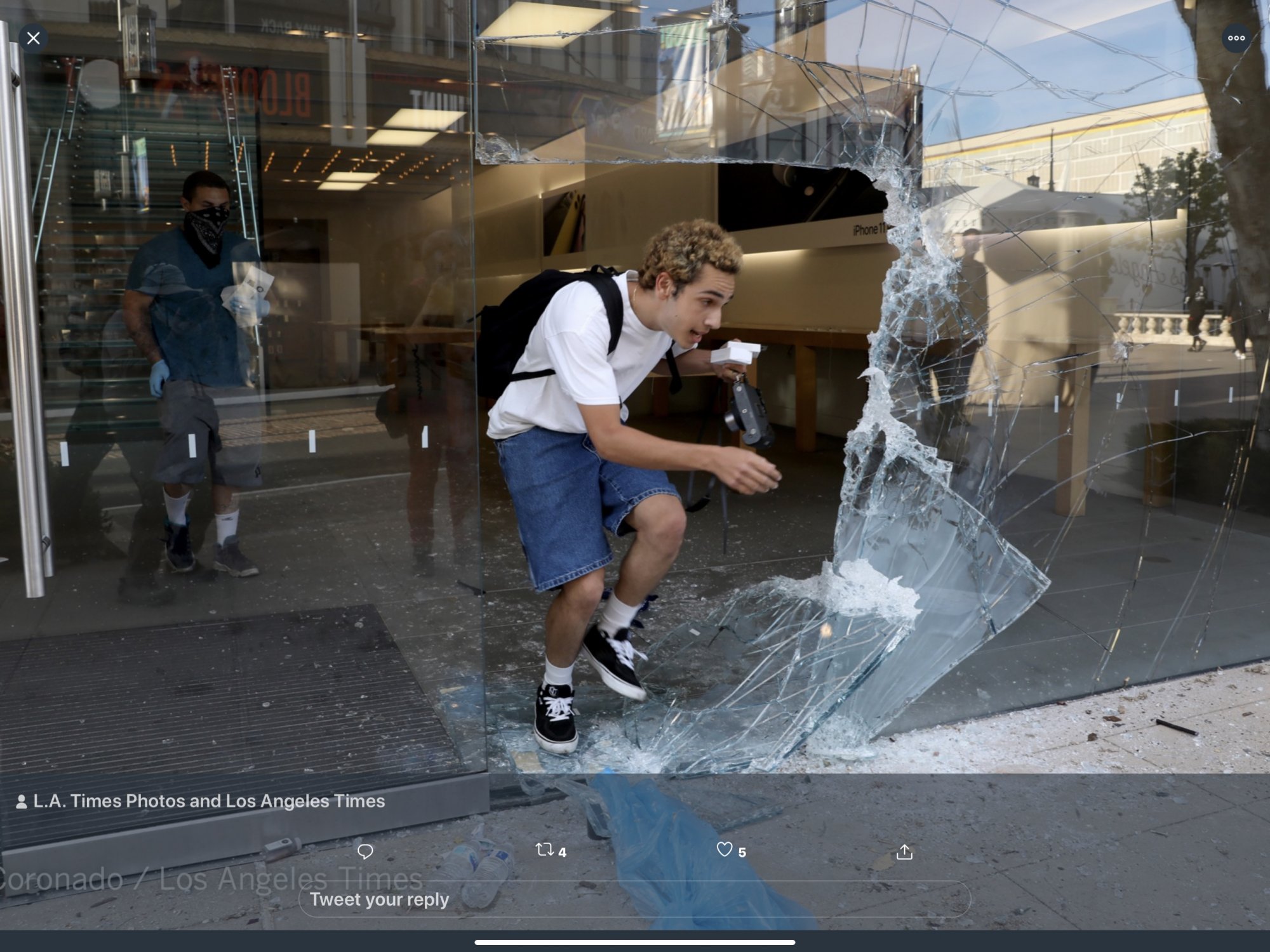 I am watching the news and it looks like they are looting in Santa Monica and there is a huge Apple Store there too.