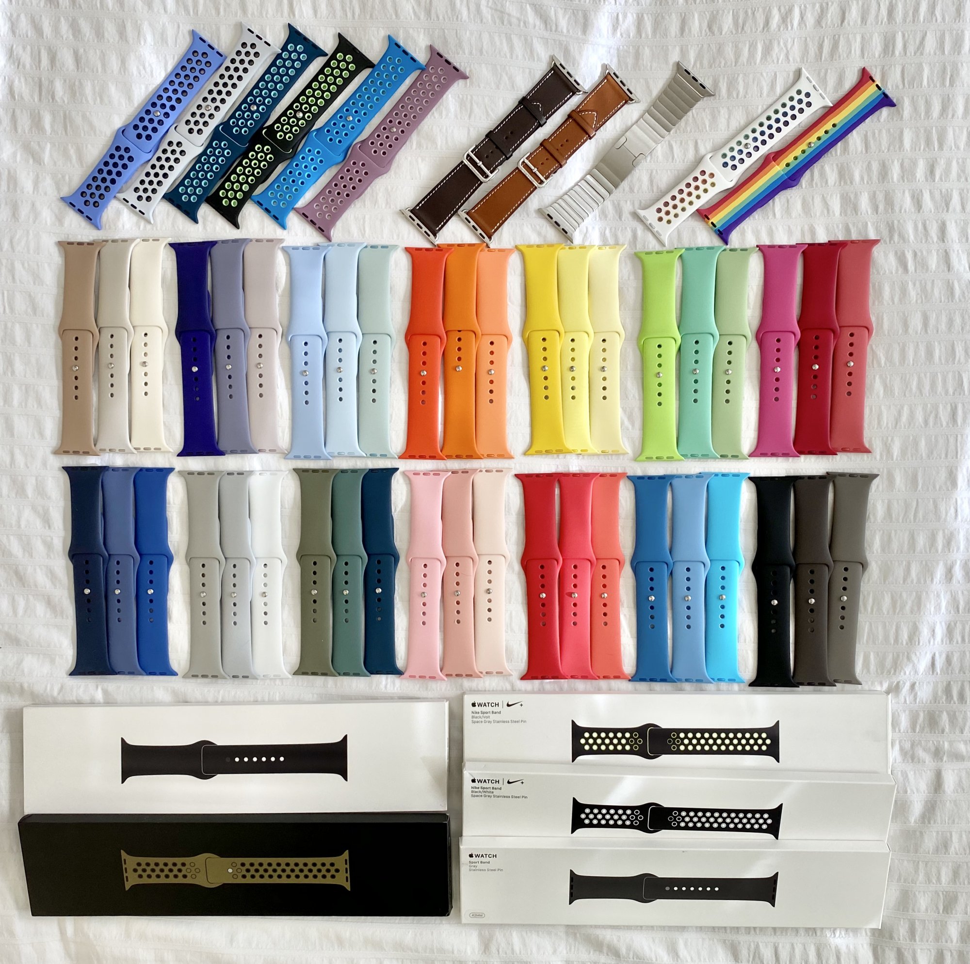 Aside these, I have 5 more apple original bands, but in their box because they have a black pin, and they don't match with my stainless steel Apple Watch, so I'm going to sell them or give it away: