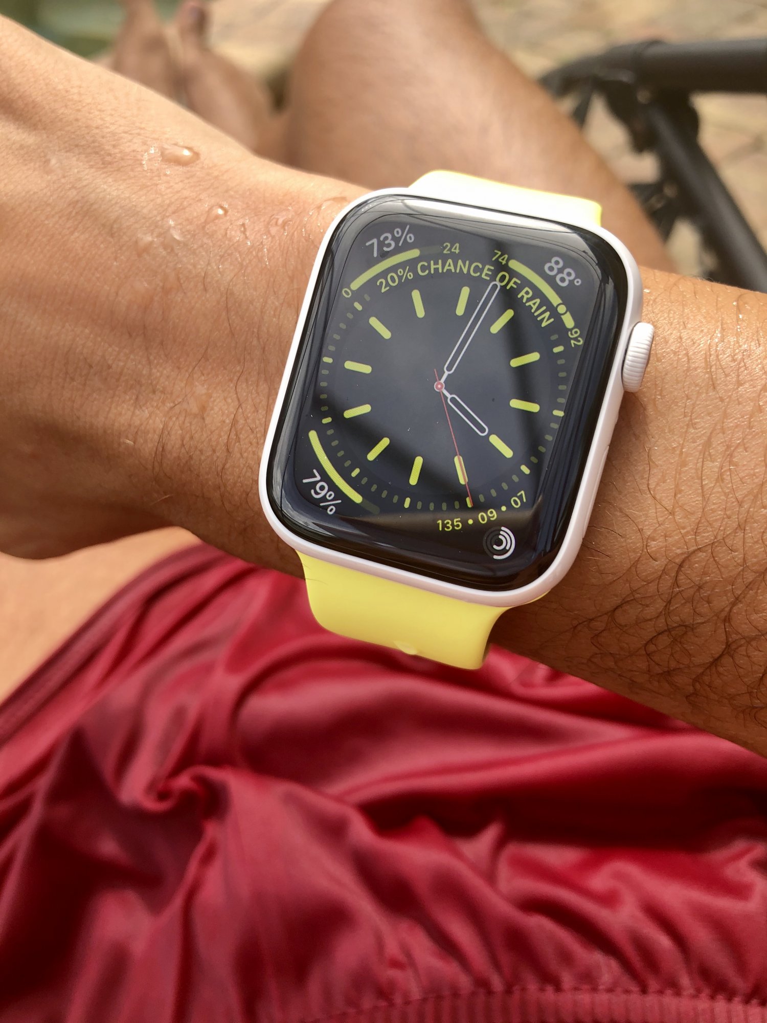 The original owner used UPS to pack and ship the watch. When it arrived, there was something in the packing material (like glue) that got all over the surface of the Digital Crown. It took me a while to carefully get it off without damaging the watch, but I finally did. Because of the activation lock snafu (he forgot to turn it off before shipping, resulting in a LOT of back and forth) and the UPS incident with the glue, he knocked another $100 off. He was very apologetic/embarrassed throughout the process, and a really nice guy.