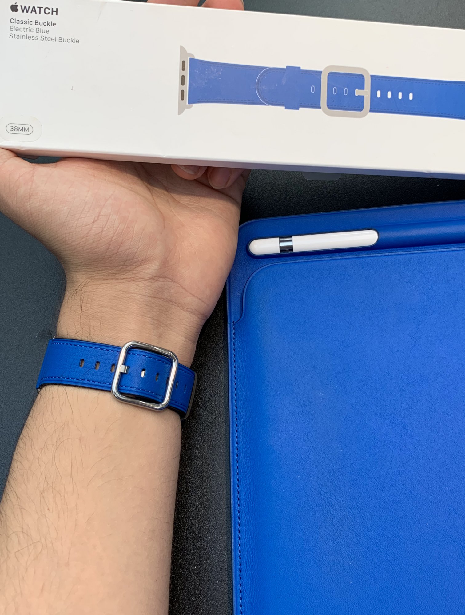 Sapphire classic buckle is a dark blue, this band is firmly primary to my eyes, relative to the range of blue classic buckles. Apple’s misleading hero shot also has electric looking pretty Dern dark, no Laura.