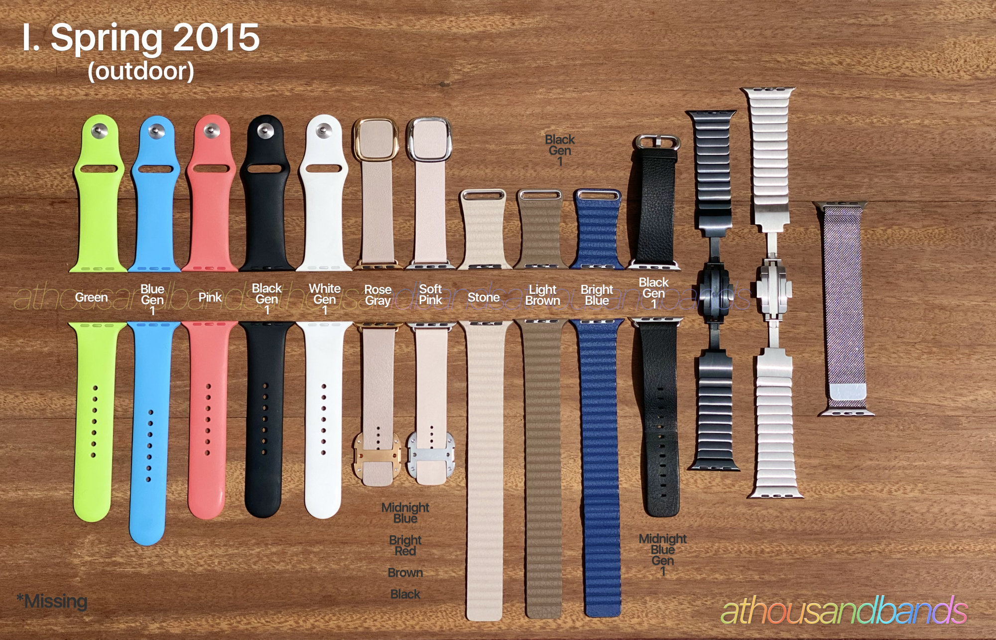 Awesome illustration. Much better than the first attempt! The scary part is knowing that someone out there has literally every single band of all styles Apple has ever made, probably including a gold link. For sure someone who works at Apple.Bear with me folks...believe it or not my post of all my spring 2015 bands yesterday wasn’t my first attempt and yet it was so rough. I realized what I thought was my midnight blue LL is actually bright blue (don’t worry I dug out the box) and so I figured I better start over and enlisted @mikedop to check my work copying over @choreographics seasonal data