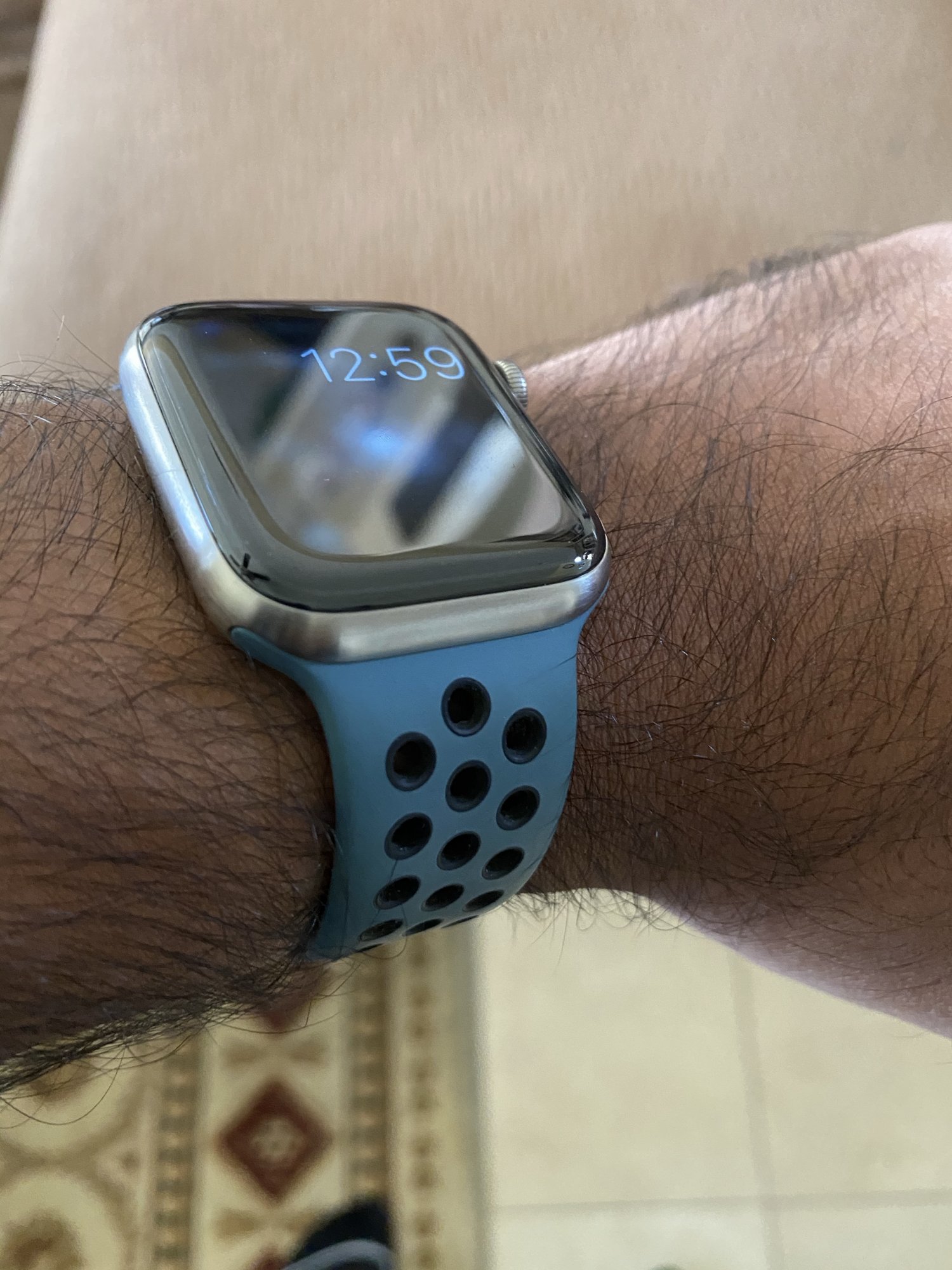 I have to ask. How much?In other news, chargerstore came throgh w a request on a preowned 44mm celestial teal/black band. 😀. Some shine underneath but overall in great shape...