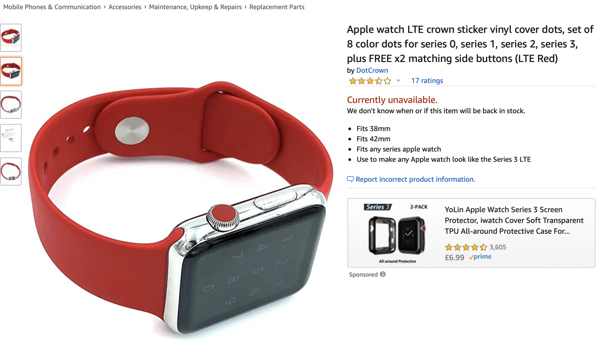 As well as plain black, there are lots of tantalising but unavailable listings offering sheets of crown and home button stickers to match all band colours - perfect if you only wear one or two bands, but useless for the likes of us...
