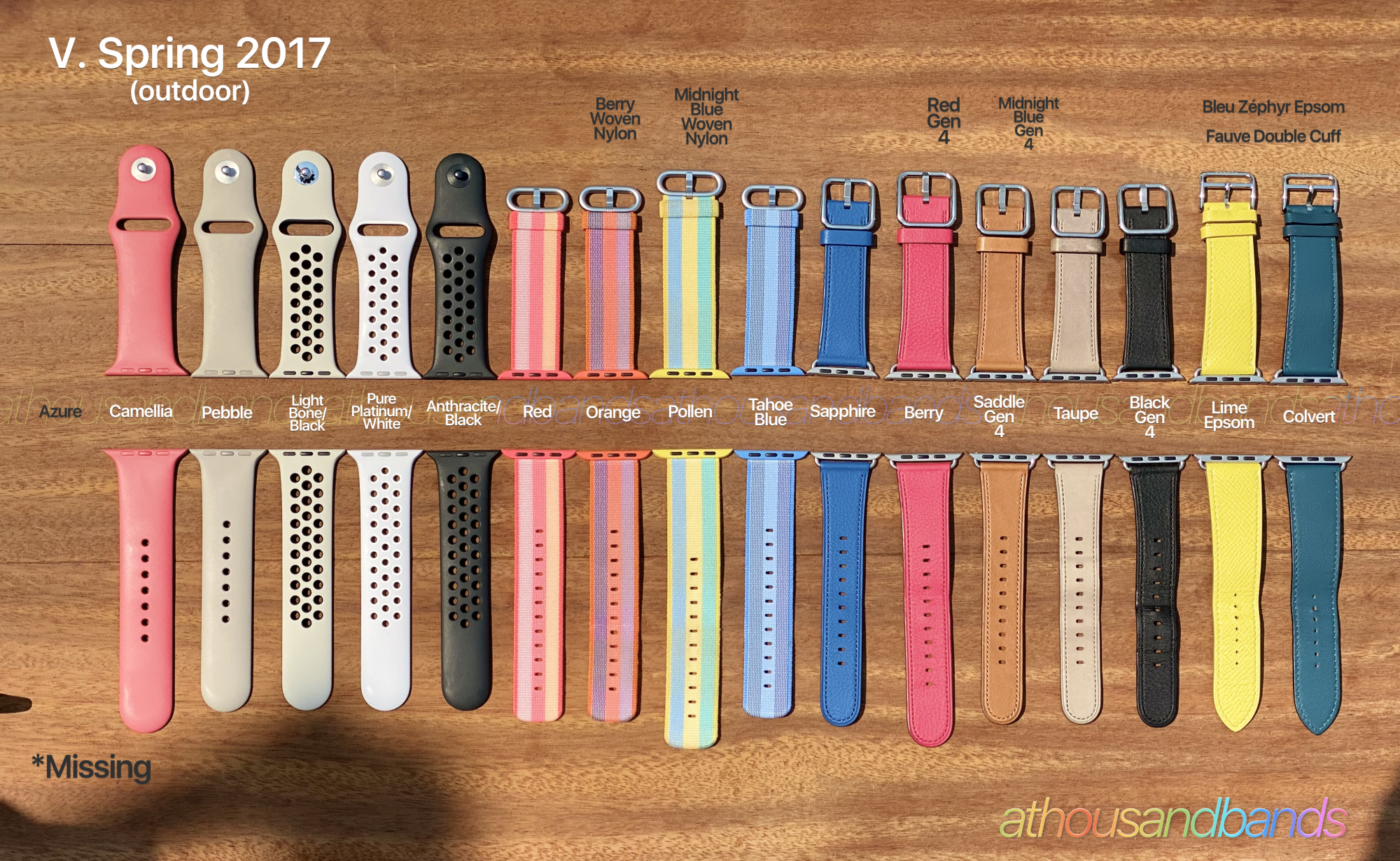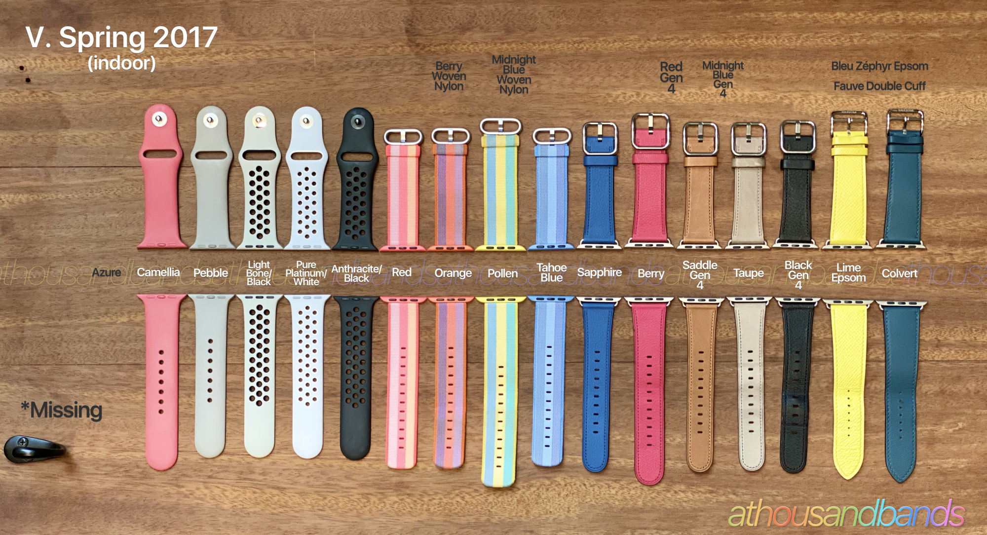 Spring 2017 is up there with Spring 2019 as one of my favorites. Such a nice mix of vibrant colors and more dusty shades. I already have the Pollen woven from this set and have Orange and Tahoe Blue stripes on the way.V. Spring 2017 (thank you @Nobes1990 for the cheap mint sapphire, worth the wait and the resulting ladder shadow from my new shooting location; note the sick palm tree reflection in light bone’s mirror finish pin!!)