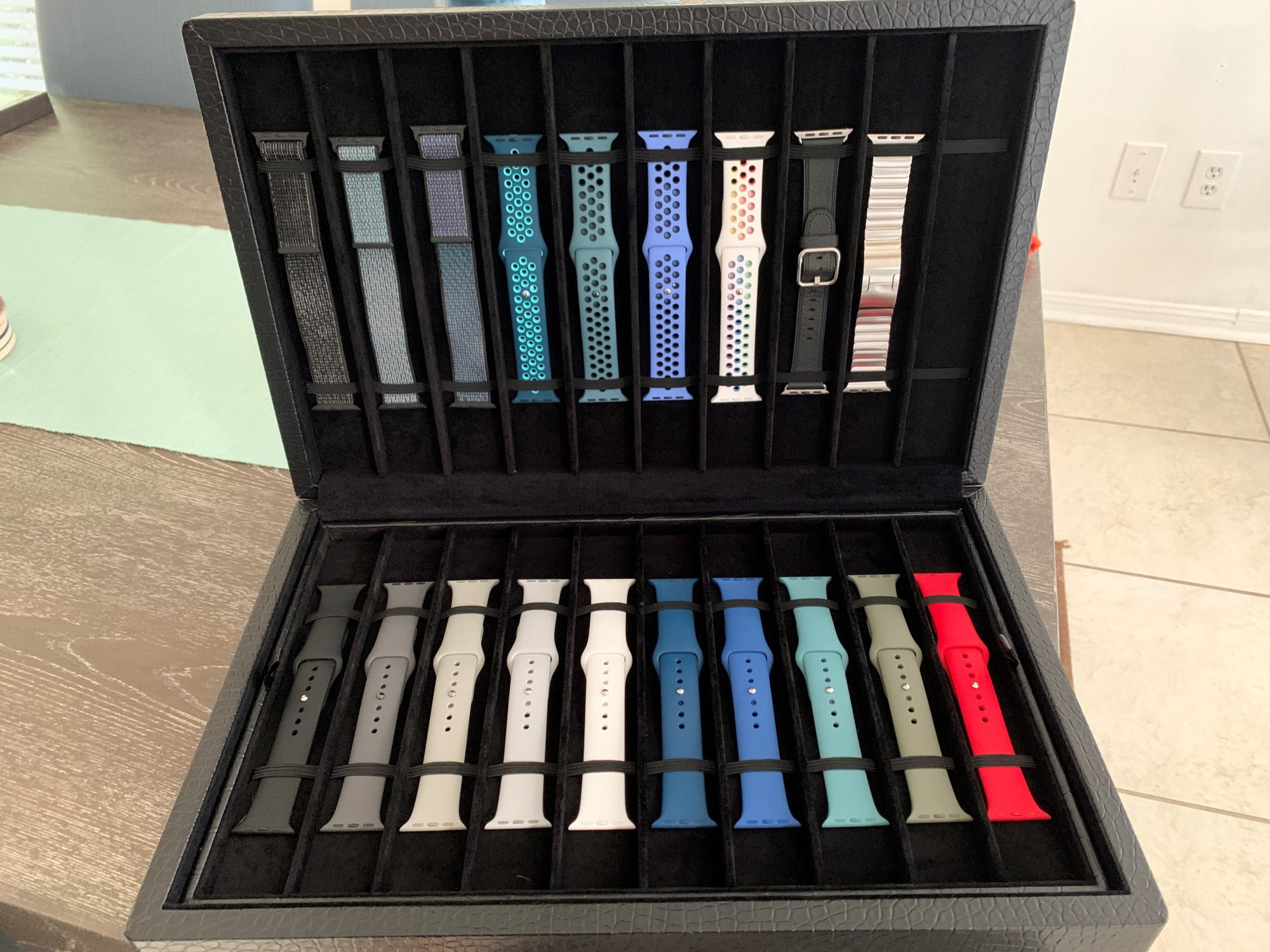 mmm, celestial teal & hyper grape loopGot a brand new dark gray titanium edition for super cheap and my nice little box came in. Fits 40 bands which is a good amount, just need to put them all in there now!